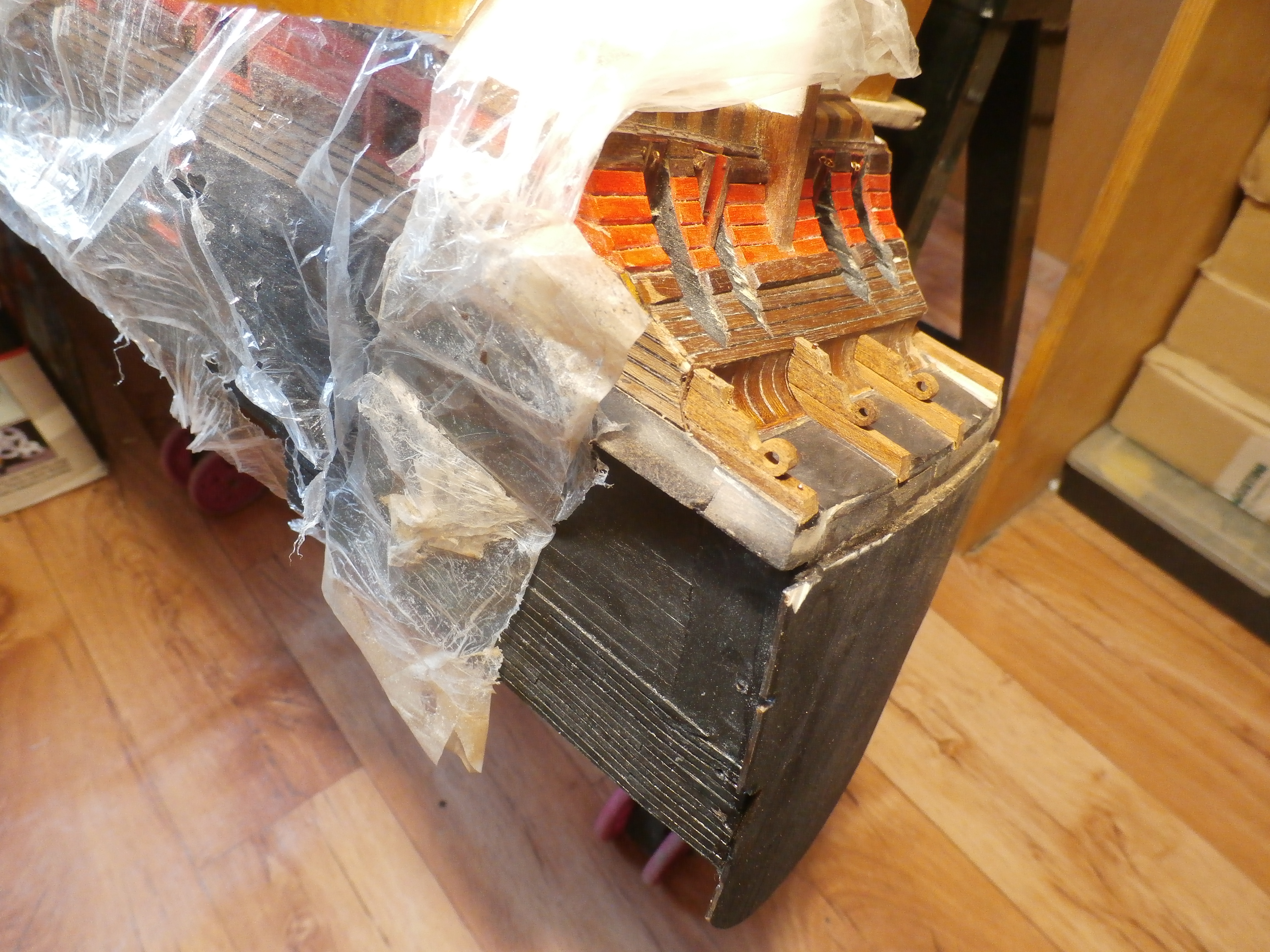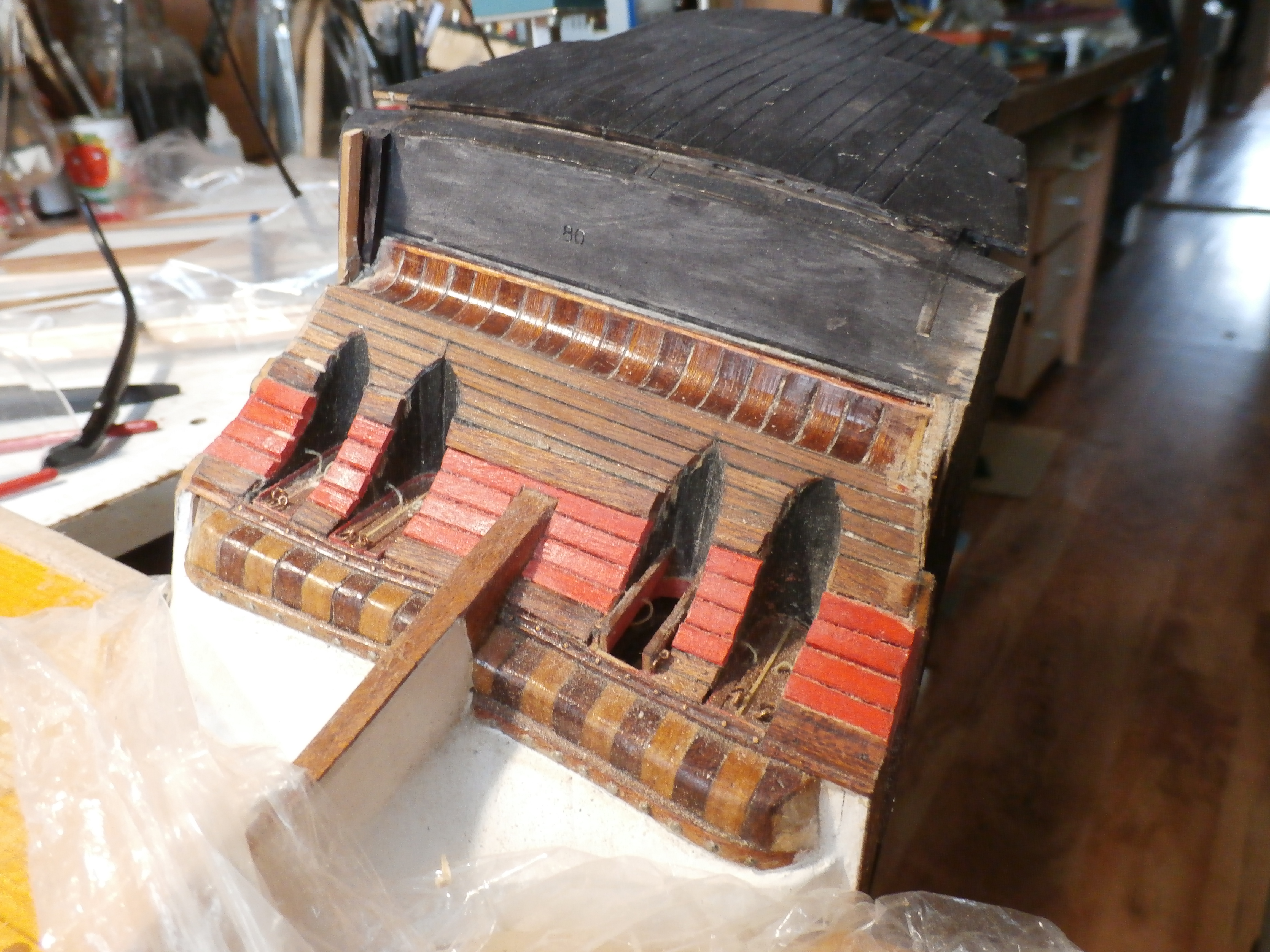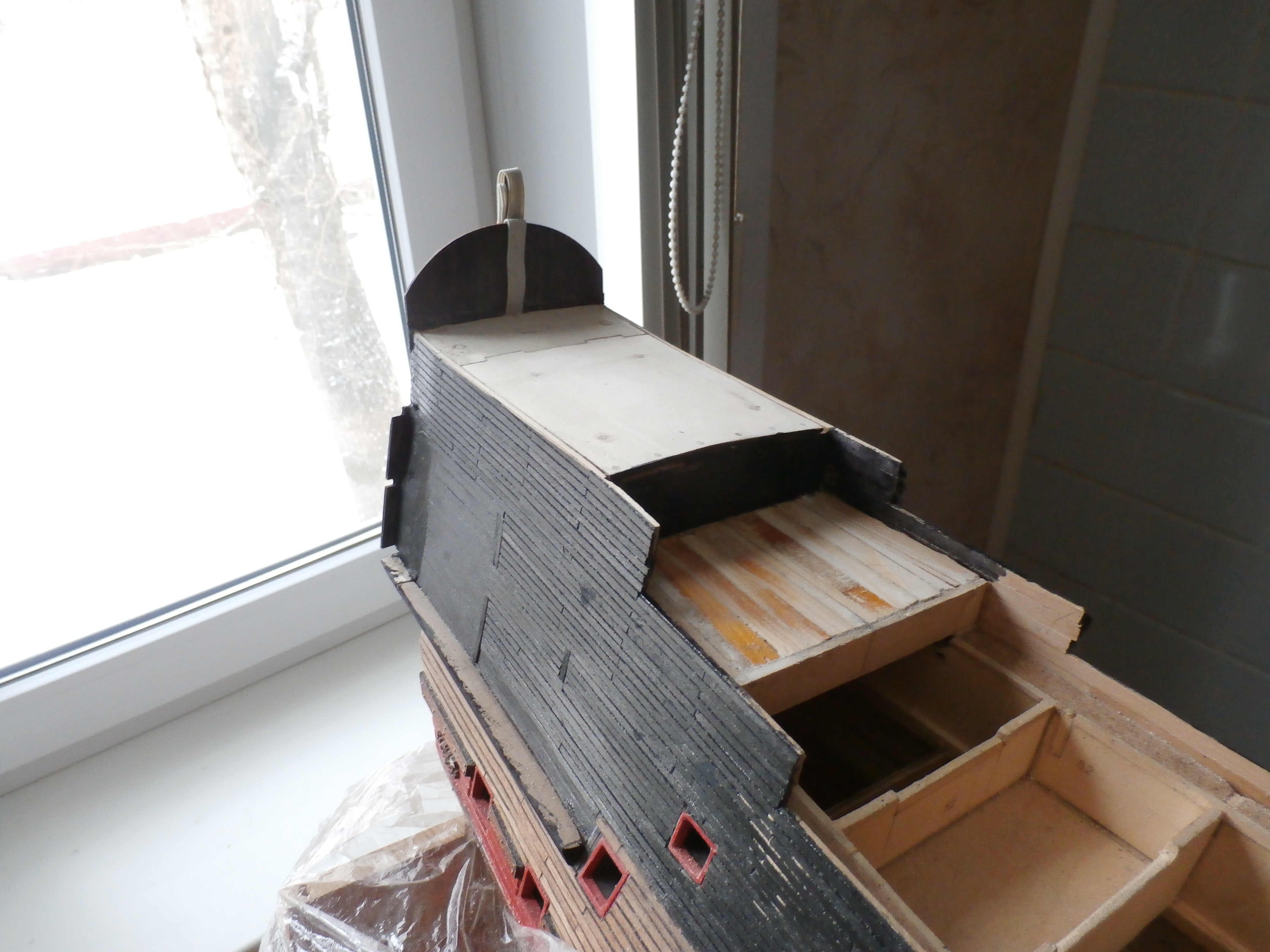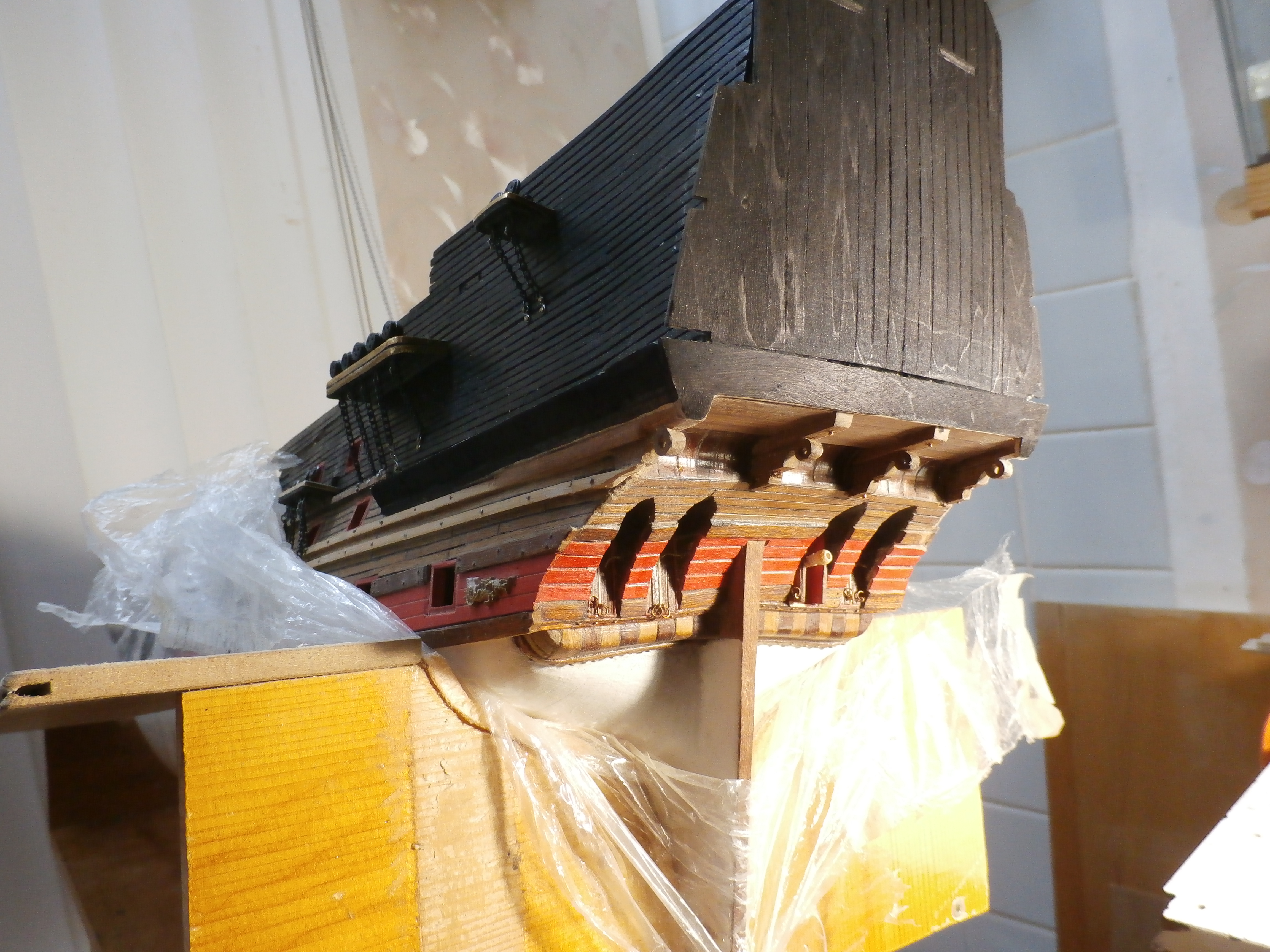 Я жив и работы на моей микро верфи, что на письменном столе продолжаются. В настоящее время занимаюсь обустройством кормового окончания (оконечности) корпуса своей модели: английского парусного линейного корабля "Повелитель морей".