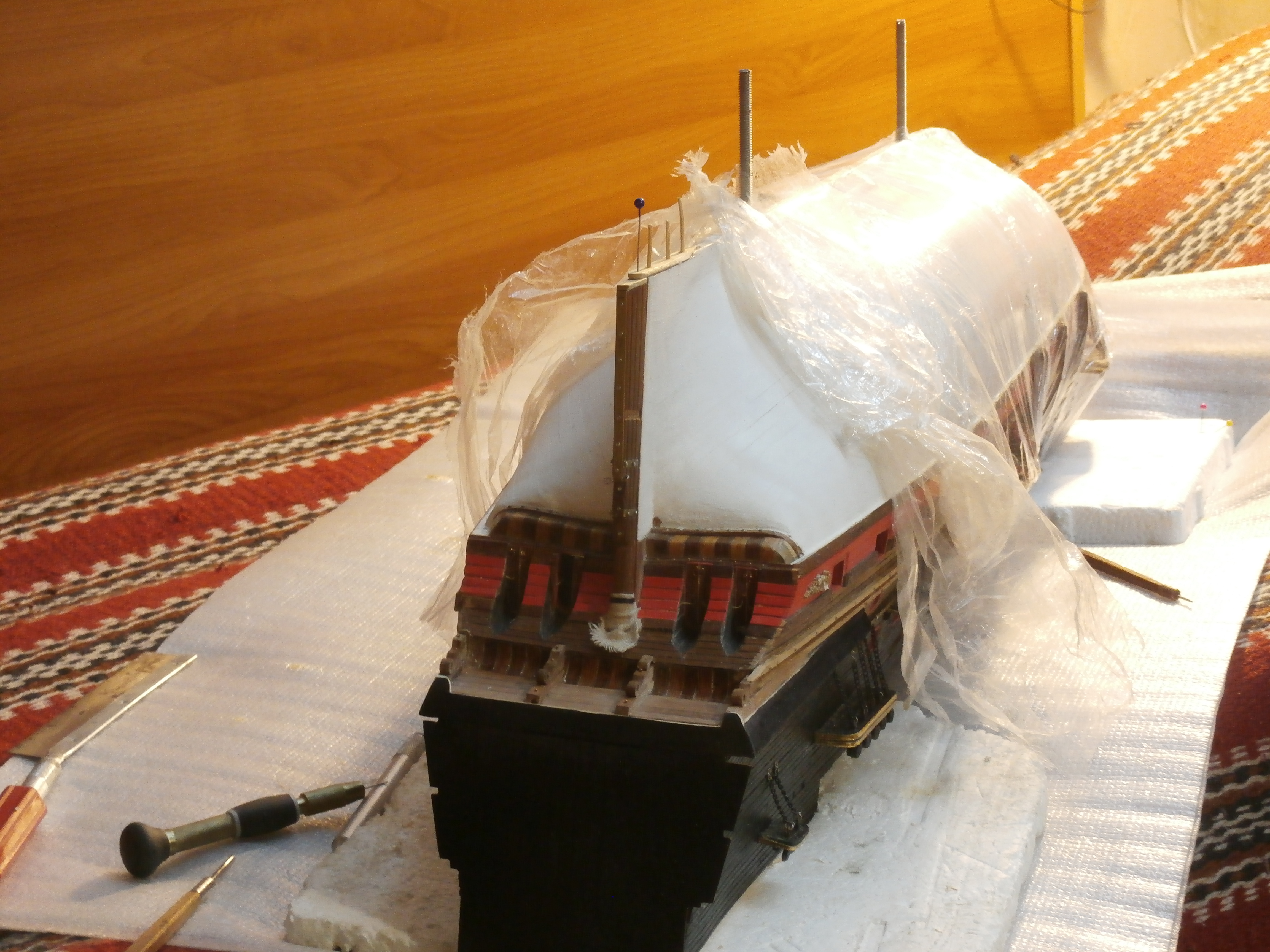Я всем рад. Должен сообщить, что болезнь моя пошла на спад, вчера меня возили на томографию и компьютер показал моему врачу положительную картину. Думаю не малую роль в этом, сыграло моё увлечение и в какой то степени мой "Повелитель морей". Так что верфь моя на письменном столе продолжает свою работу.