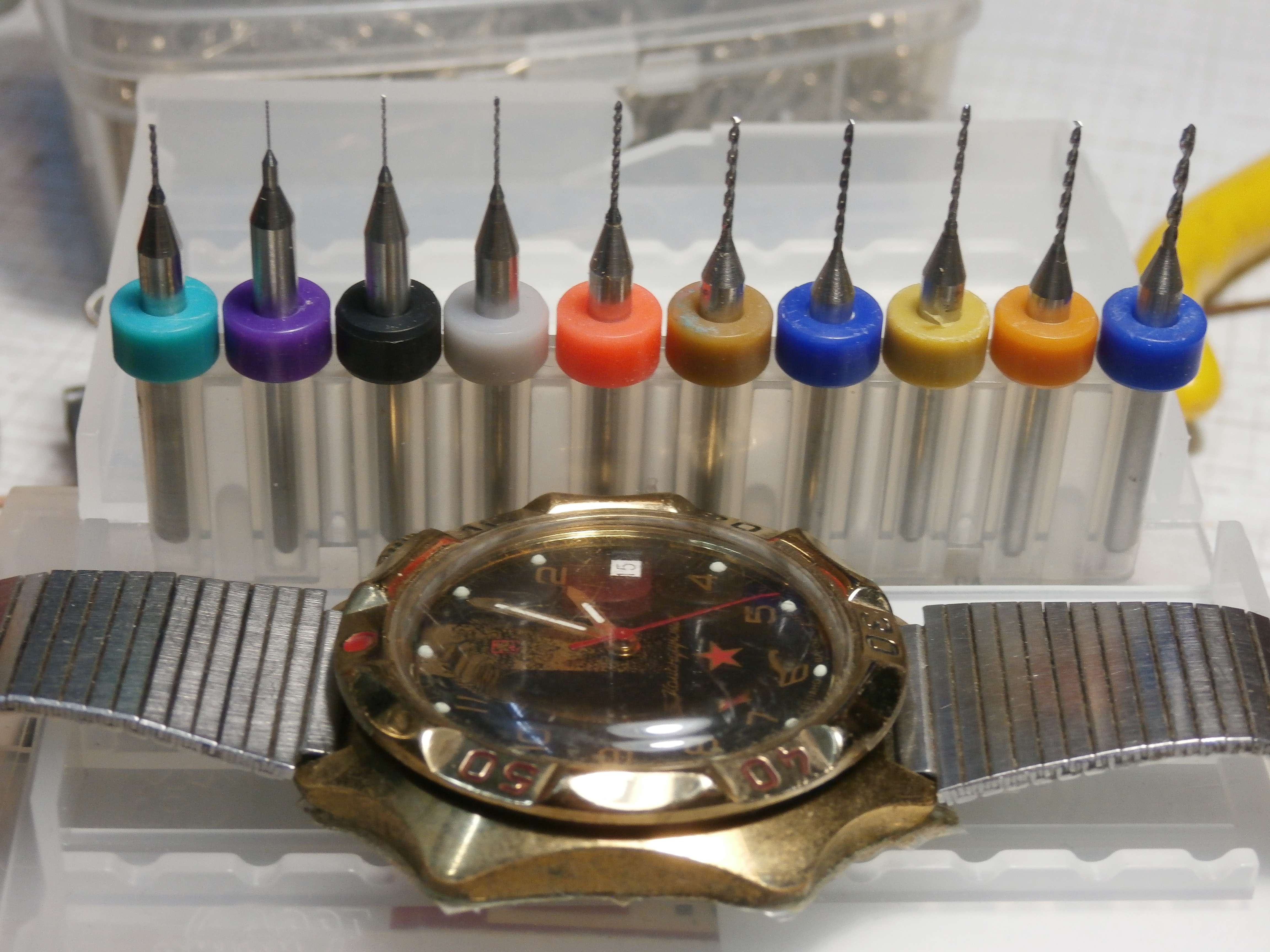 Очень мне и помогли специальные, их называют ювелирными сверла, которые купил на Верфи. но должен предупредить, они очень хрупкие
