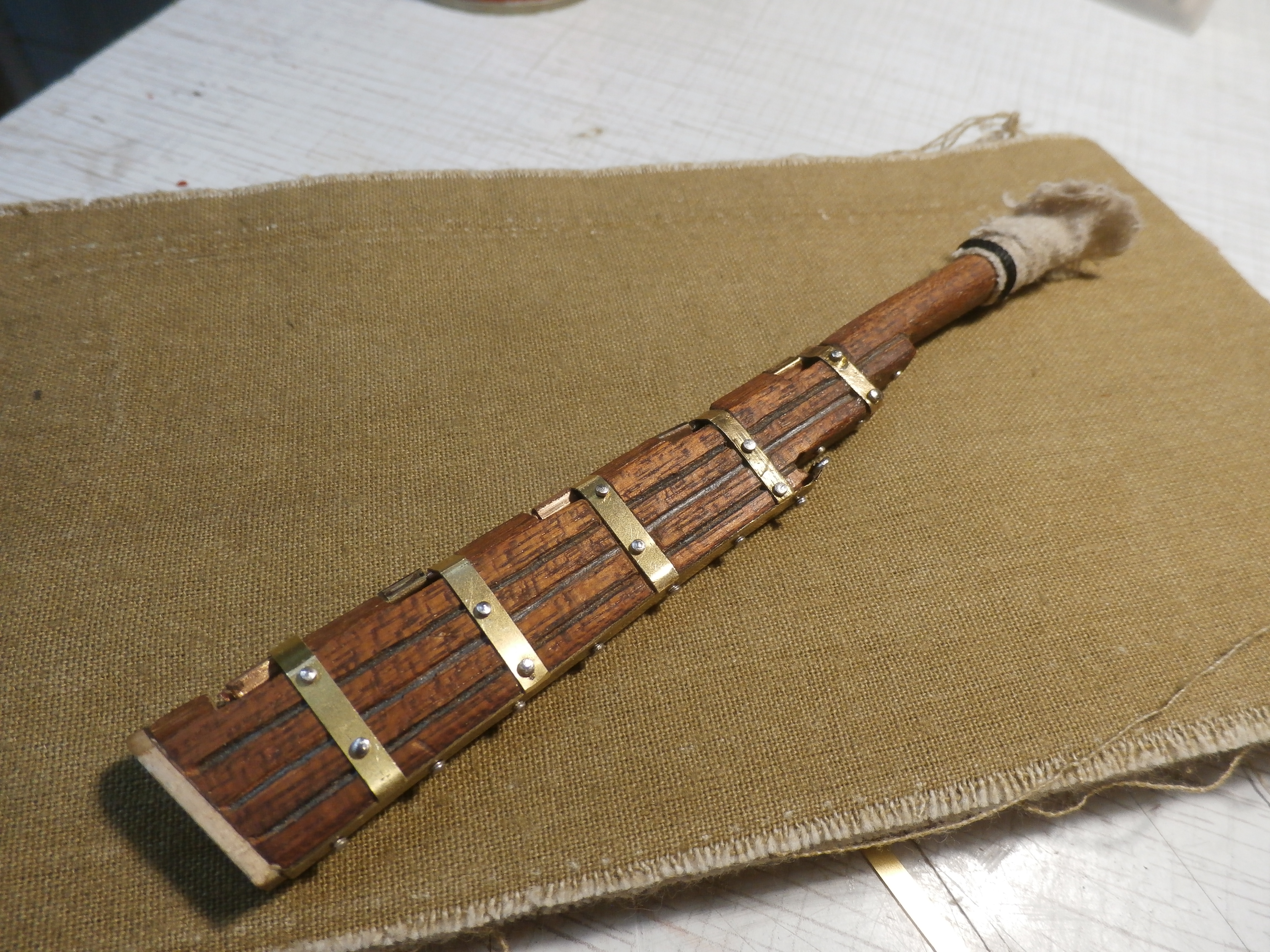 Первую часть работы закончил. Руль окован. На руле навешаны корабельные петли...