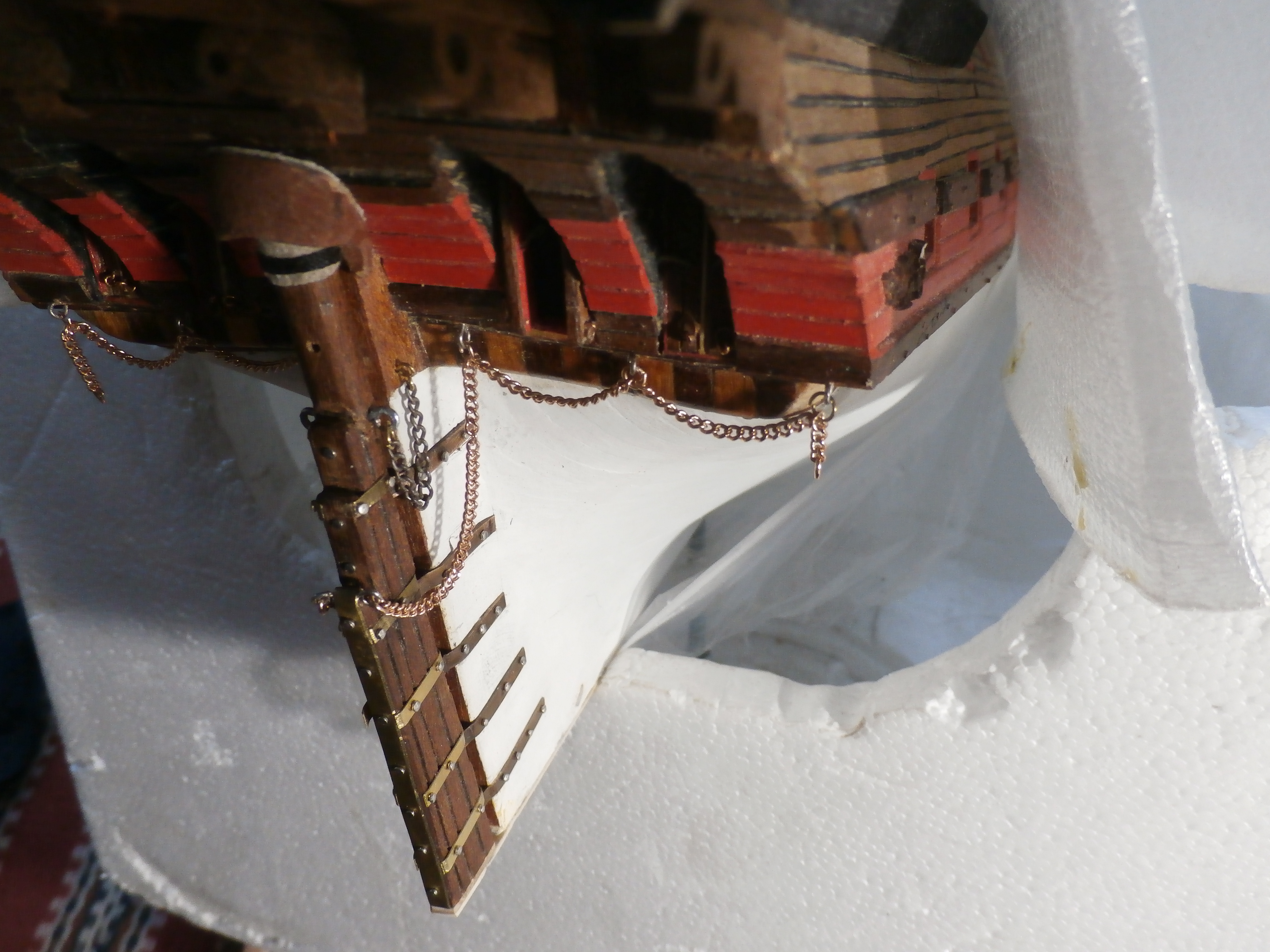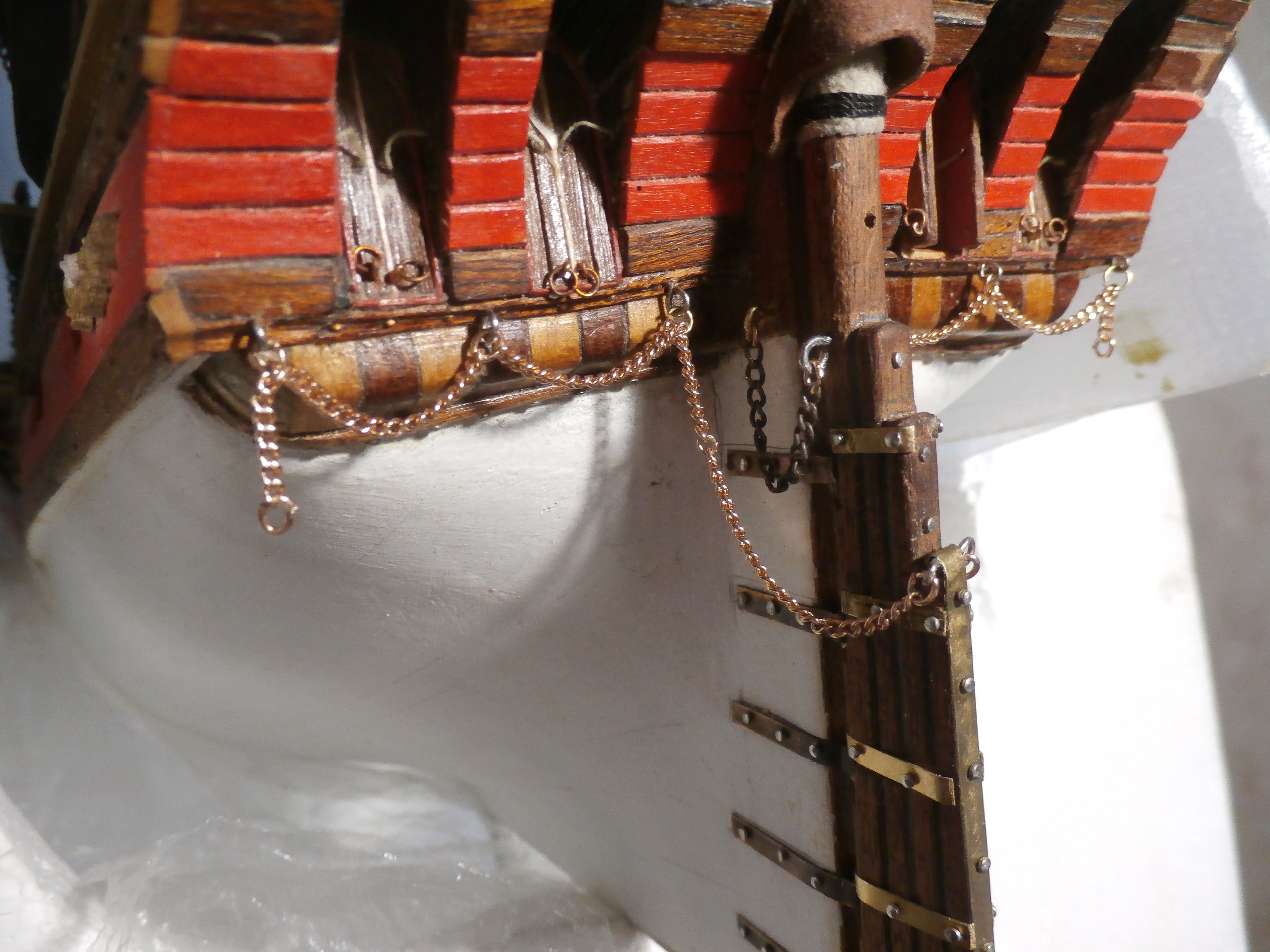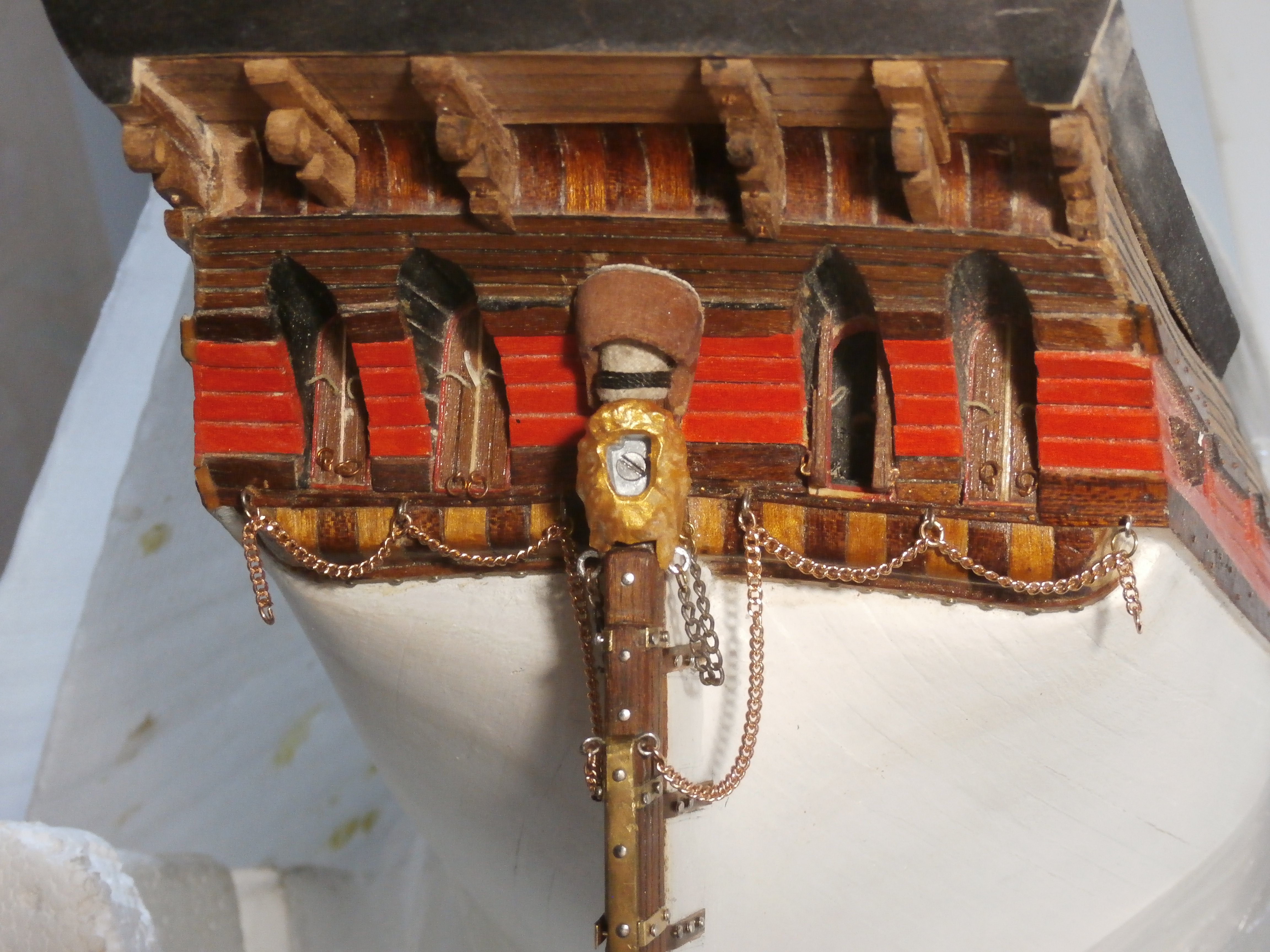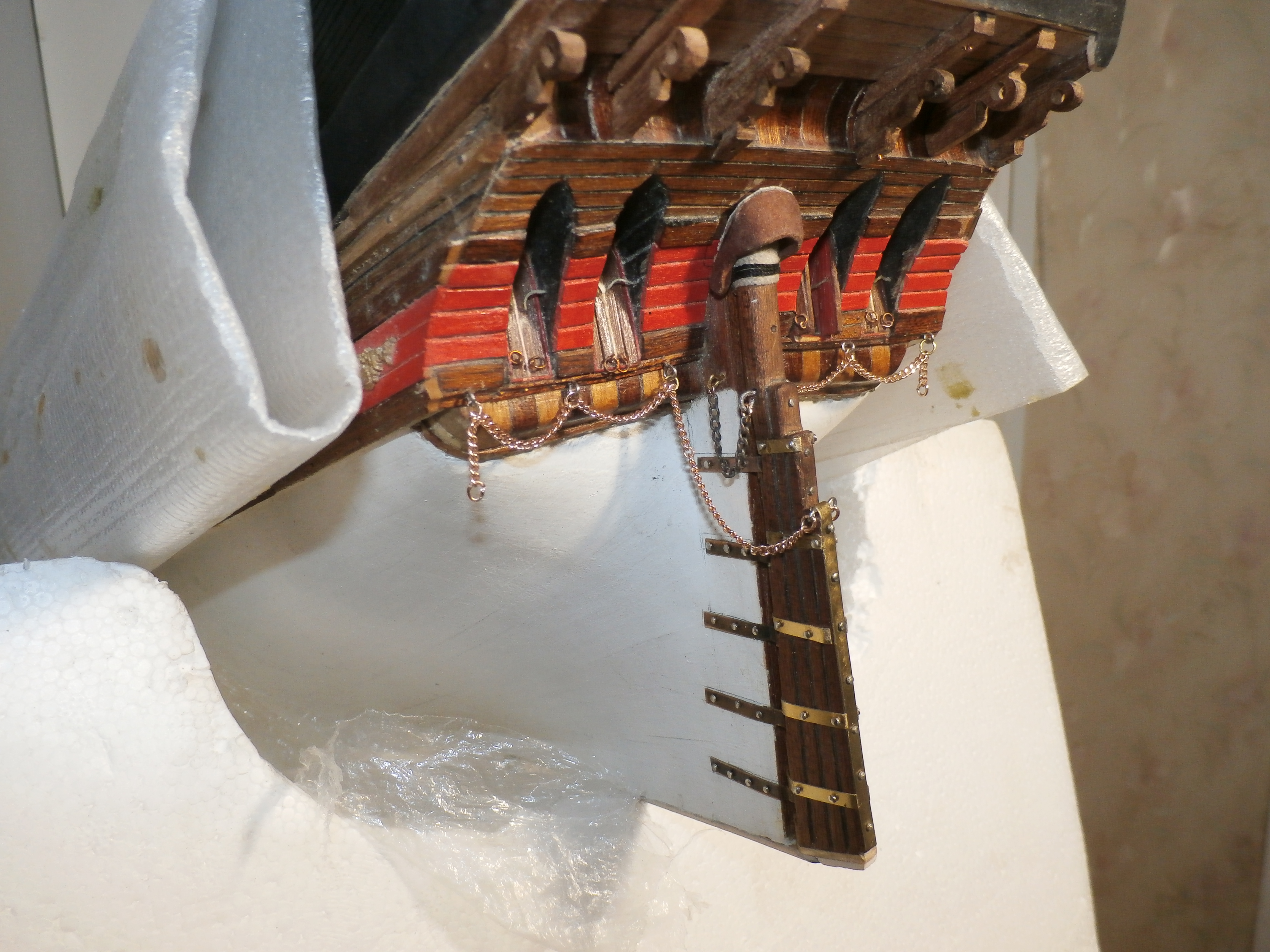 Должен сказать, что модель этого корабля мне очень нравится! Я давно мечтал построить именно старинный корабль! Сейчас долго раздумывал чернить ли мне сами рулевые петли? Но чтобы подчеркнуть то что корабль очень старинный решил петли не чернить оставить их латунными с темным налетом старины, хотя понимаю что это не совсем правильно и не совсем это укладывается в судомодельные каноны. Удачи вам и всем конечно Здоровья!