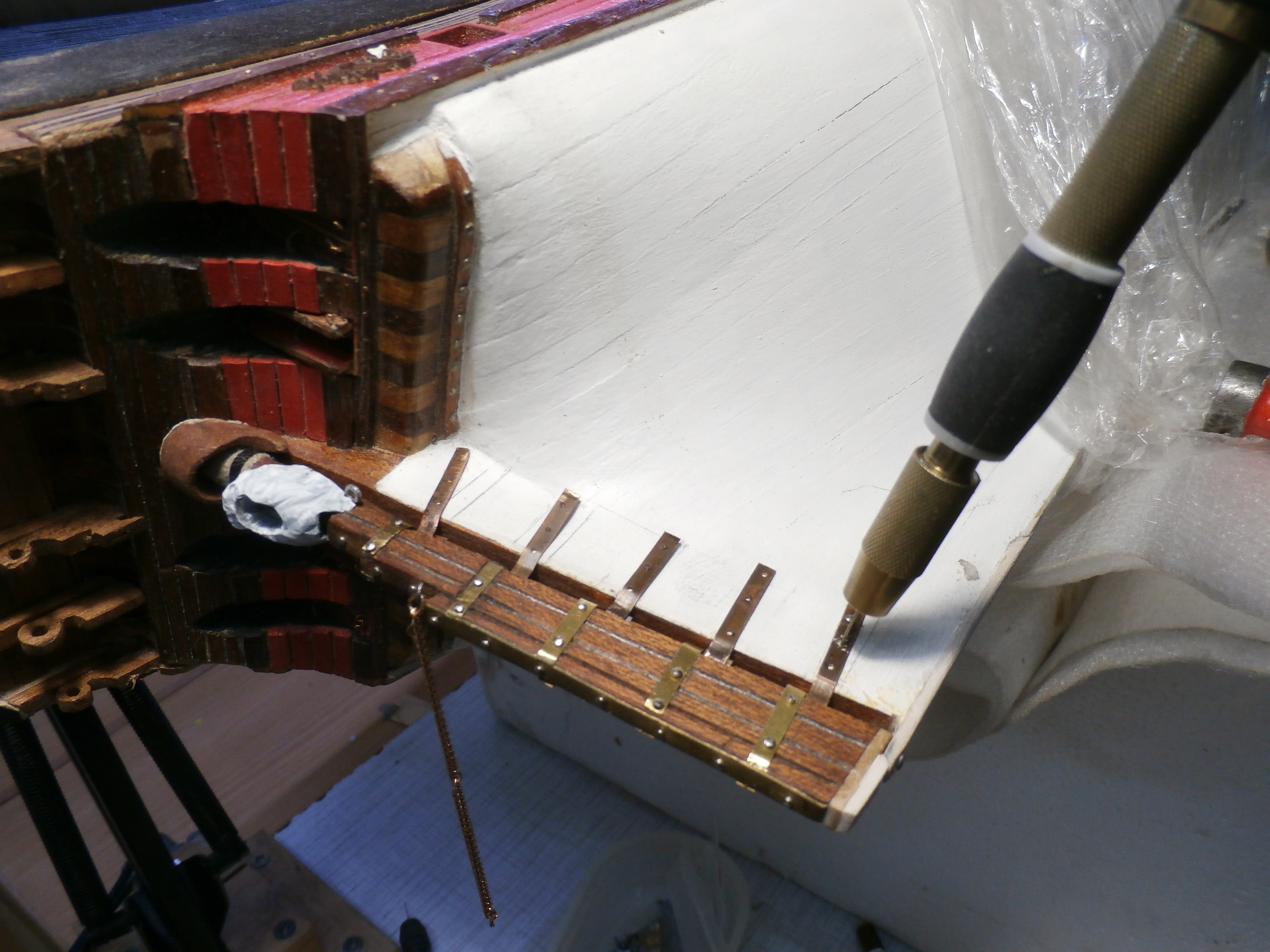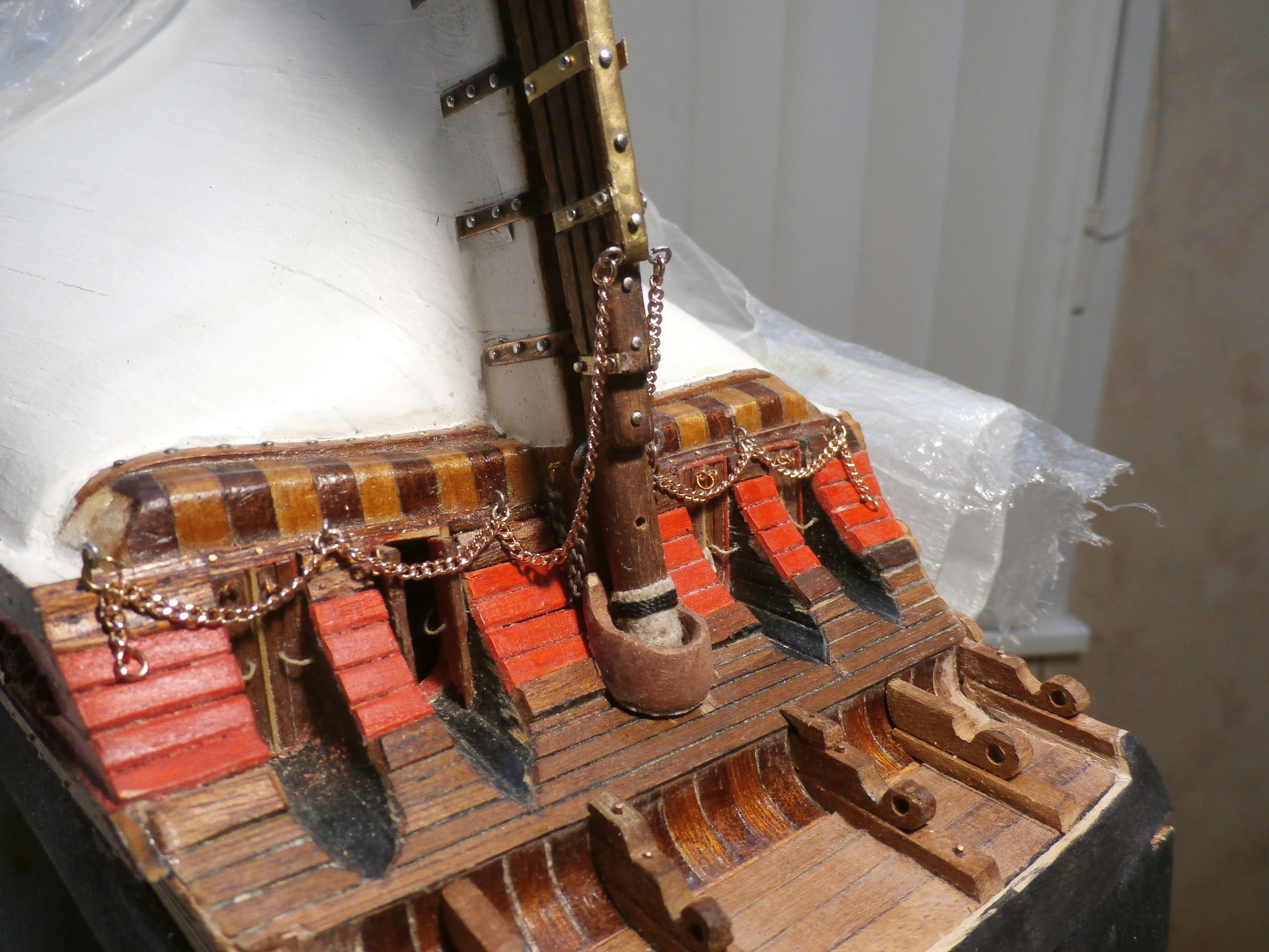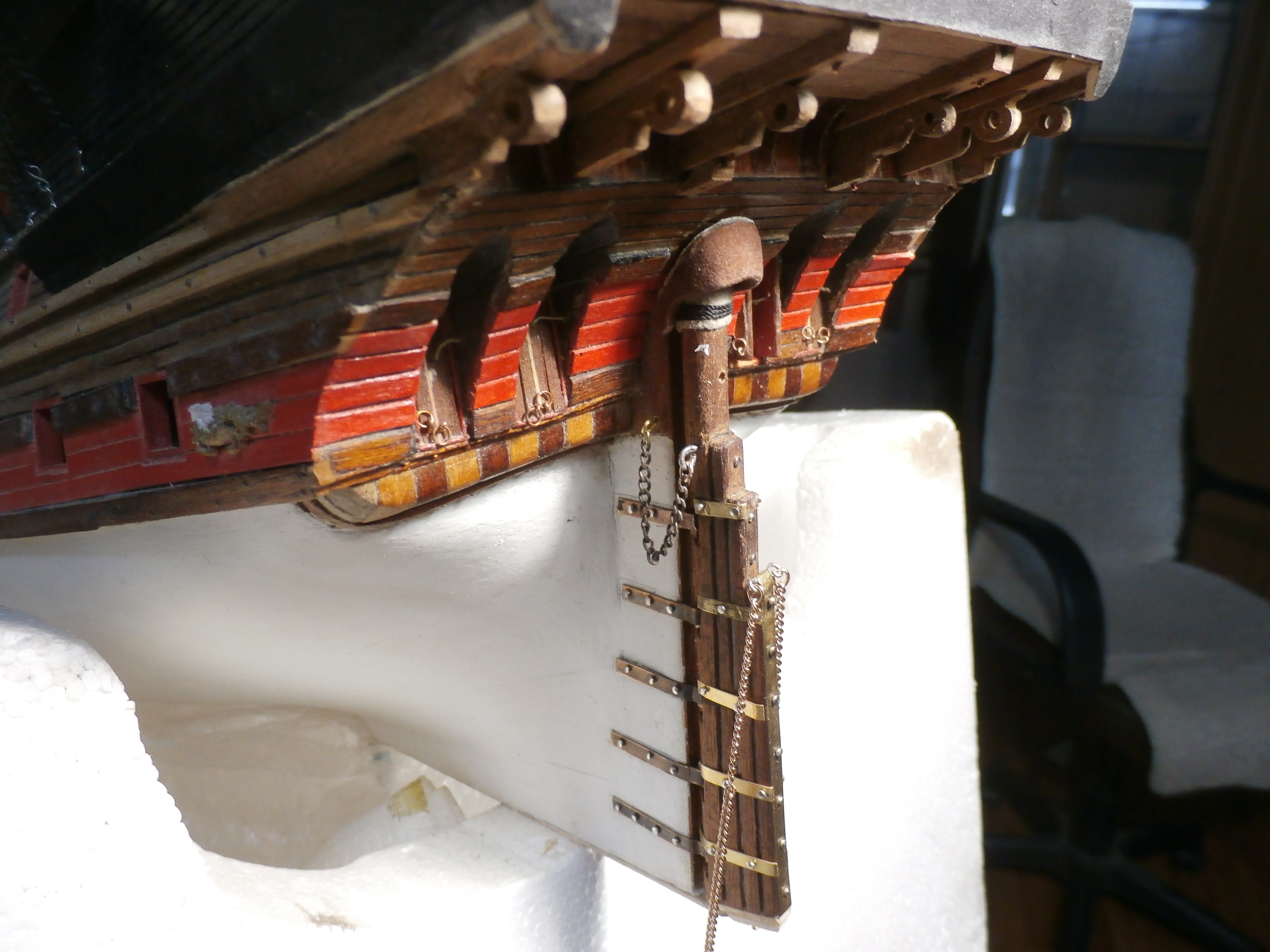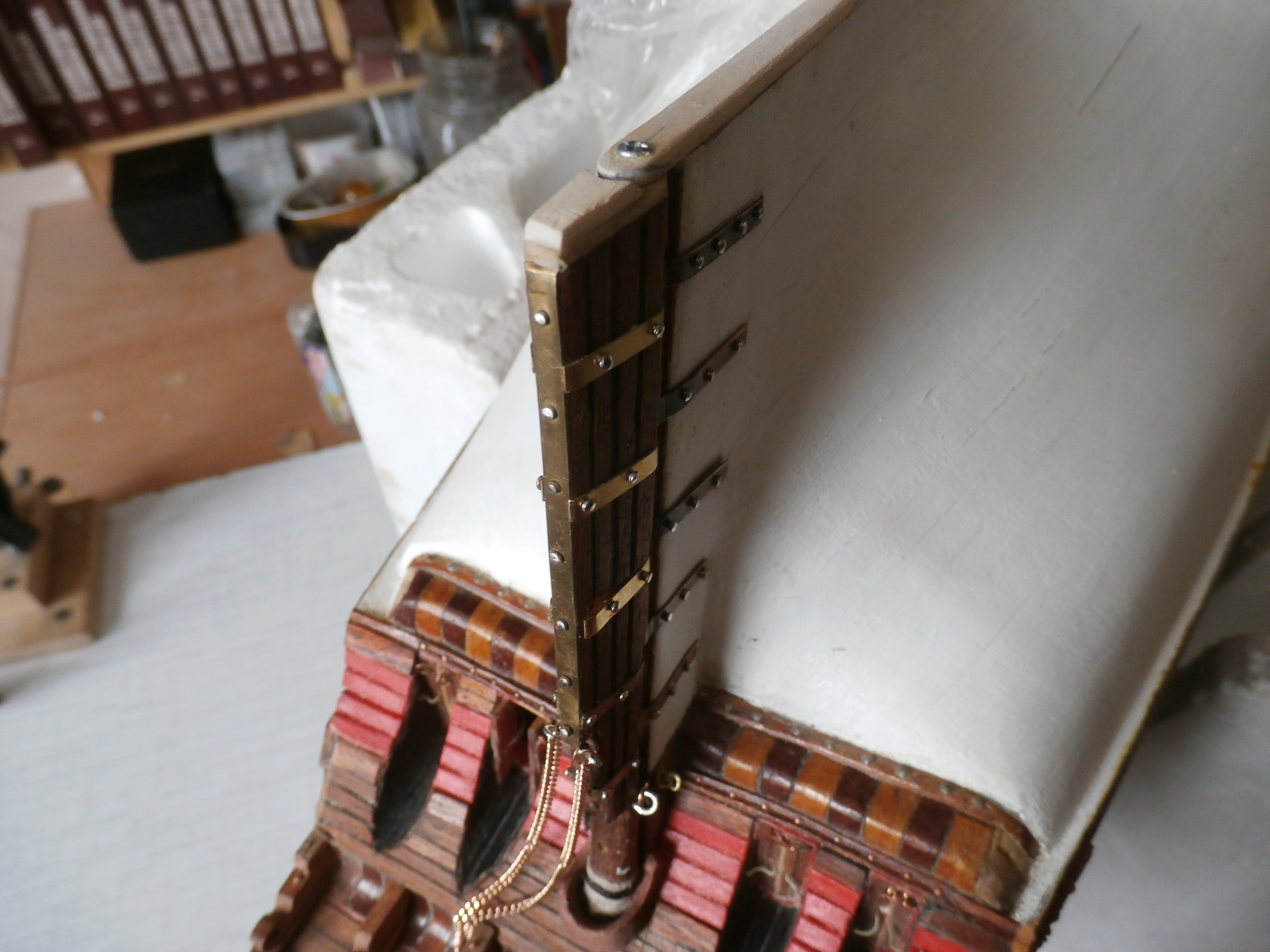 Должен сказать, что модель этого корабля мне очень нравится! Я давно мечтал построить именно старинный корабль! Сейчас долго раздумывал чернить ли мне сами рулевые петли? Но чтобы подчеркнуть то что корабль очень старинный решил петли не чернить оставить их латунными с темным налетом старины, хотя понимаю что это не совсем правильно и не совсем это укладывается в судомодельные каноны. Удачи вам и всем конечно Здоровья!