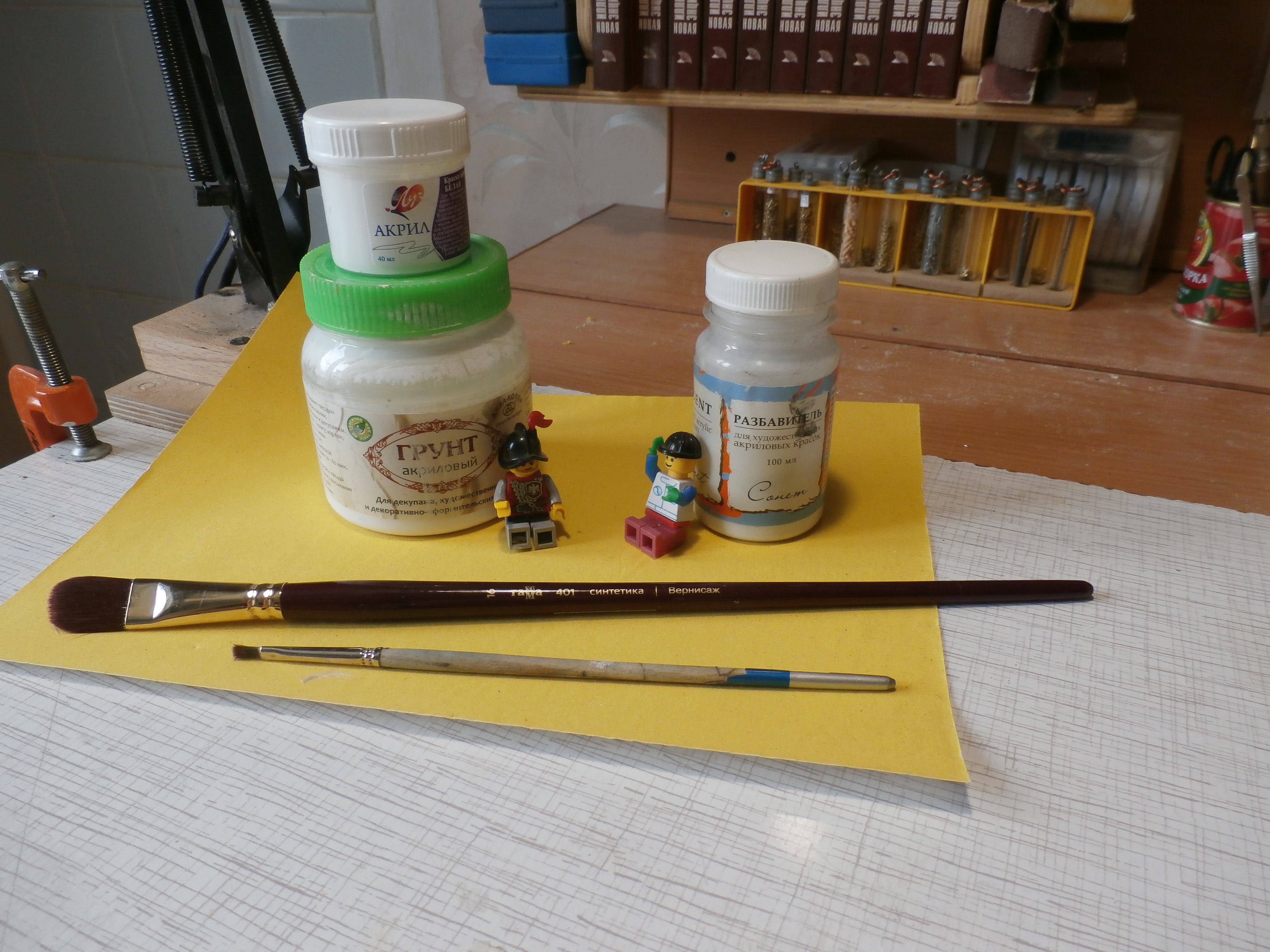 У меня нет аэрографа. Буду корпус модели окрашивать вручную- кисточкой. Для этого я прикупил материалы для окраски корпуса модели и инструмент. Это: