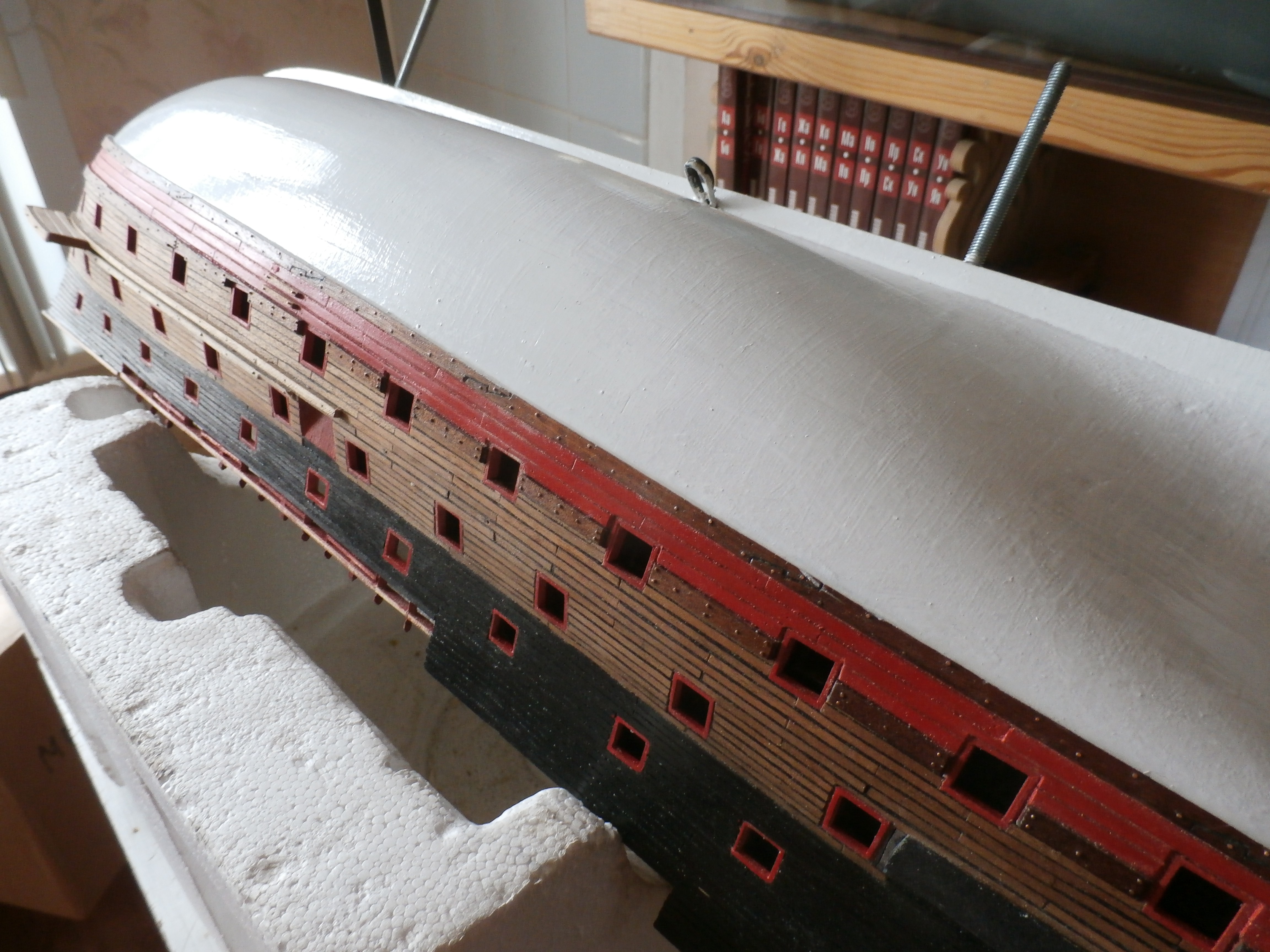 Верфь моя продолжает свою работу. Веду работы по строительству корпуса модели английского парусного линкора "Повелитель морей". Приступил к окраске корпуса (днища и бортов модели). Не скрываю окраска модели для меня довольно сложная задача. Здесь сказываются и