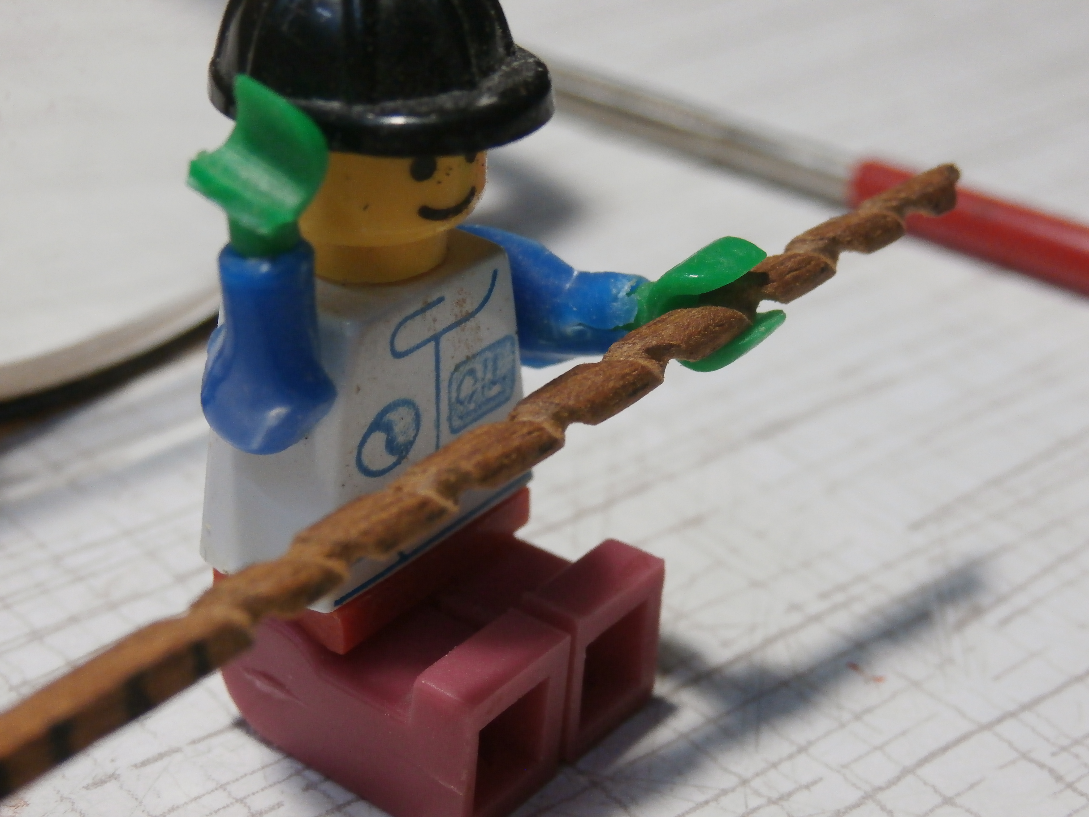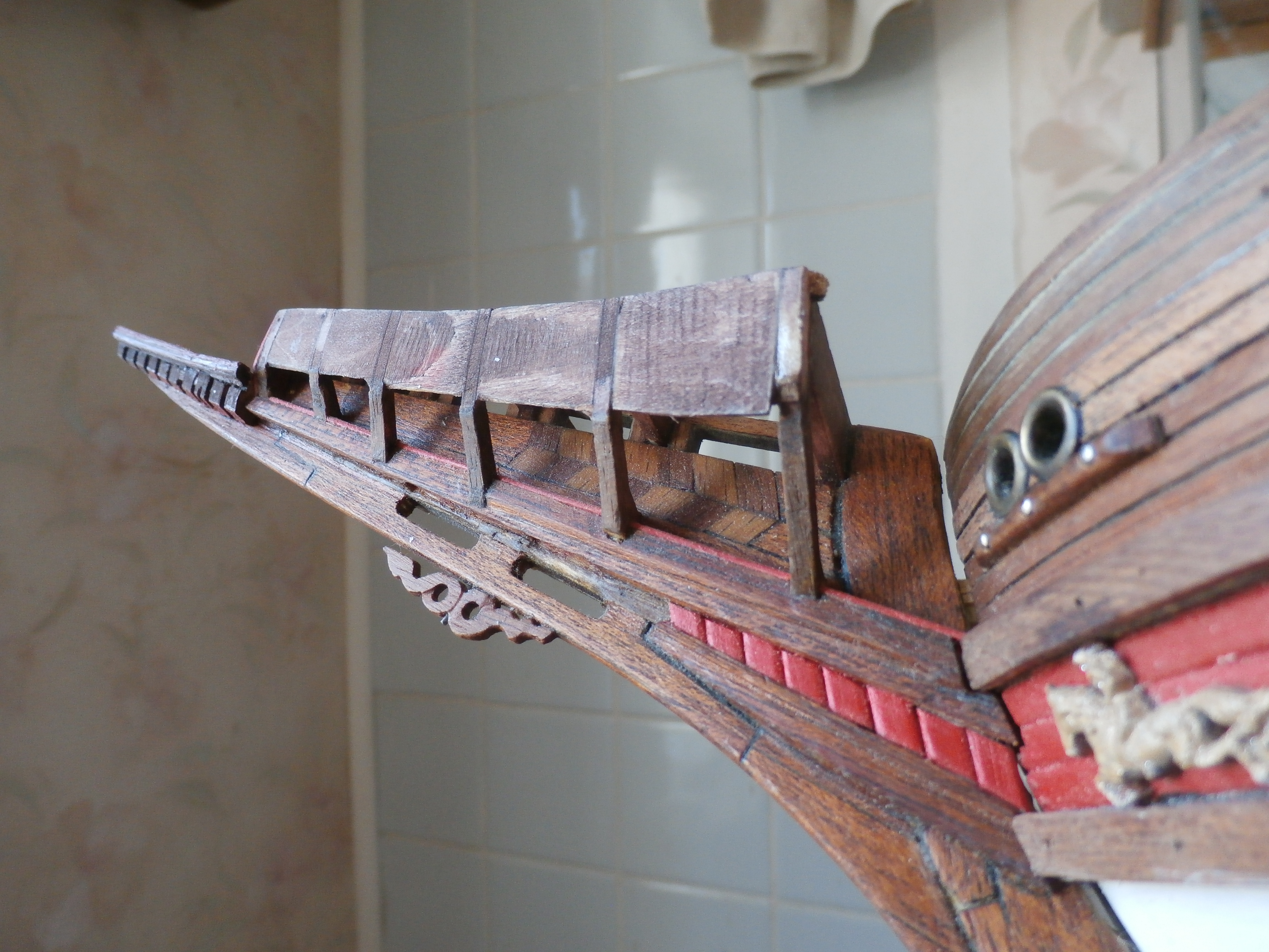 Резной декор на бортах модели, как мне кажется заслуживает того времени посвященного на его изготовление.Модель определенно выигрывает в смотрибельности по сравнению со своими товарками, Хотя конечно нужно набраться по истенне "медвежьего терпения" ибо древесина ясеня довольно хрупкая, а особенно в таких тоненьких реечках. Но я думаю, продумав и обзаведясь приспособлениями (кондукторами) можно справиться и с хрупкостью материала и с мелкой деталировкой декора...