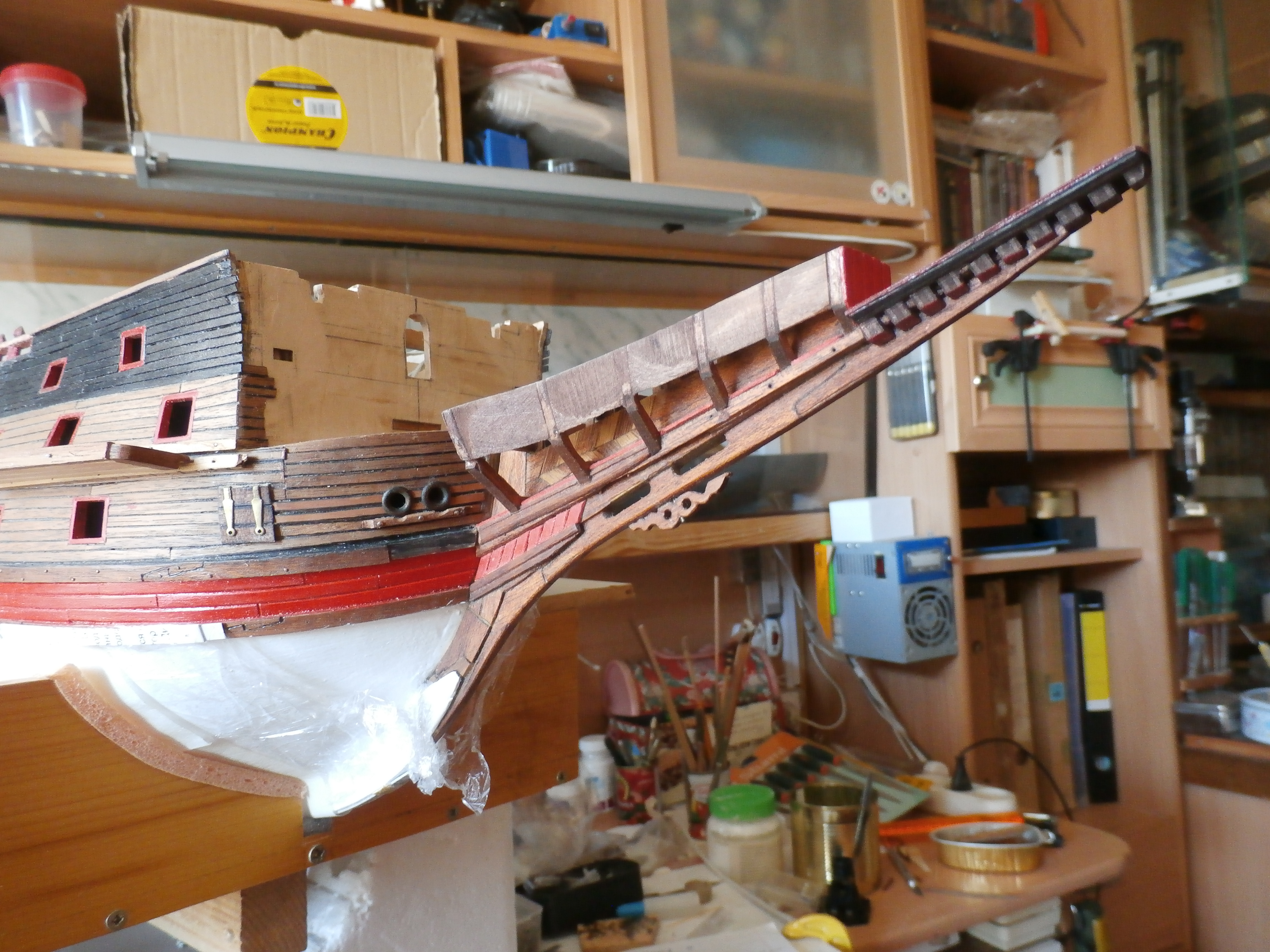 Моя верфь на рабочем столе продолжает свою работу. В настоящее время продолжаю строительство модели английского линкора "Повелитель морей" VII века. Центр строительства переместился с кормовой оконечности корабля на носовую. Очень часто даже и маститые господа судомоделисты опускают изготовление на своих моделях ЧИКСОВ княвдигеда и ЧИКСОВ гальюнной площадки. К сожалению и в проекте "Повелителя морей" ДеА они так же благополучно пропущены. Хотя, как я считаю, что это совсем не допустимо. В конструкции парусного корабля чиксы играли довольно значительную роль. По своей конструкции чиксы связывали и давали конкретную физическую жесткость княвдигеду и гальюнной площадке, намертво прикрепляя их к корпусу корабля. Посылаю несколько фотографий из свободного доступа интернета: