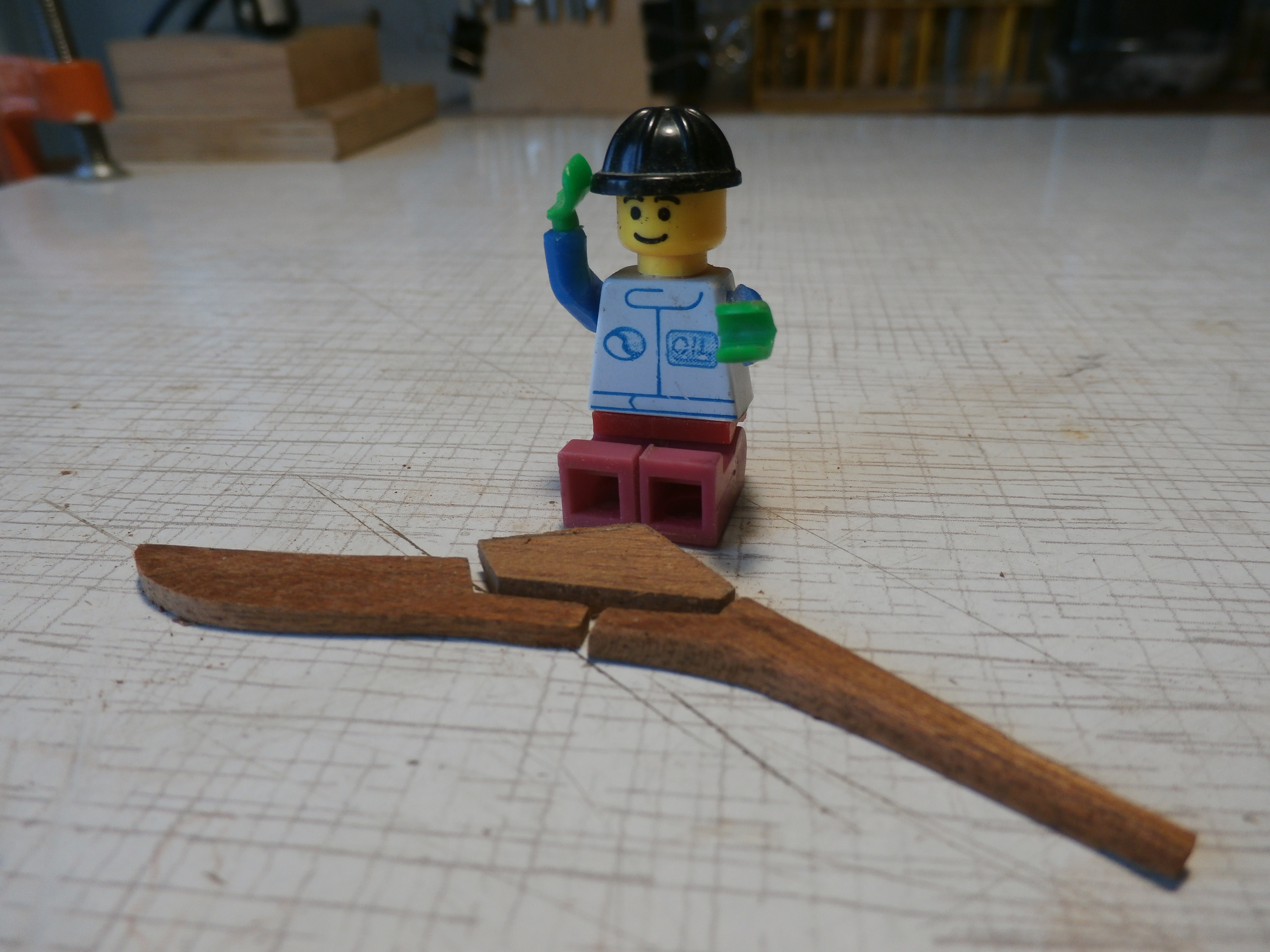 Как вы уже заметили, чиксы гальюна похожи на кницы, соединяющие и удерживающие гальюн по бокам корабля. Поскольку они являются частью декора, я сделал их из самшита. Учитывая их форму, каждая чикса должна быть изготовлена из двух частей.