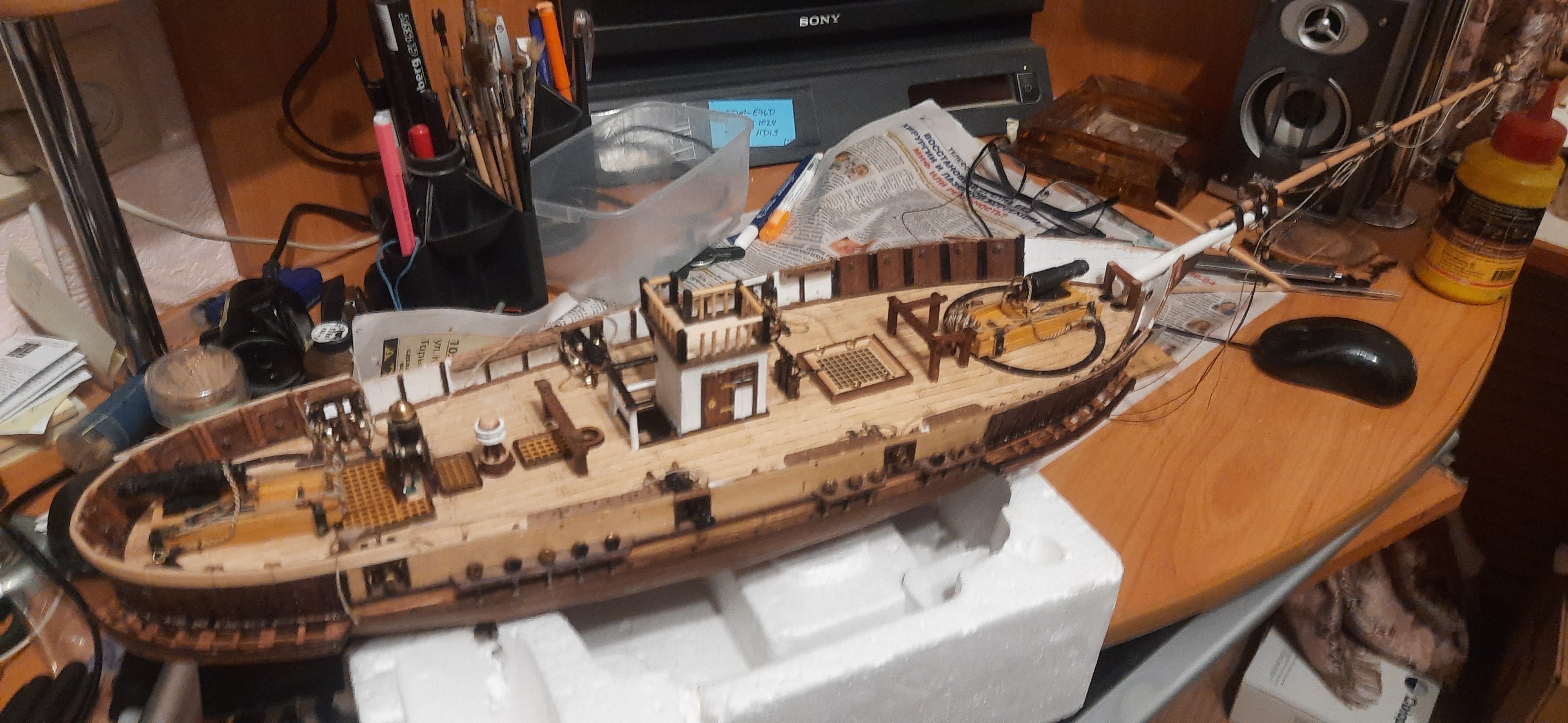 Как пример: Рабочая подставка для моего "Повелителя морей" Это пенопластовая упаковка от бензо-пилы