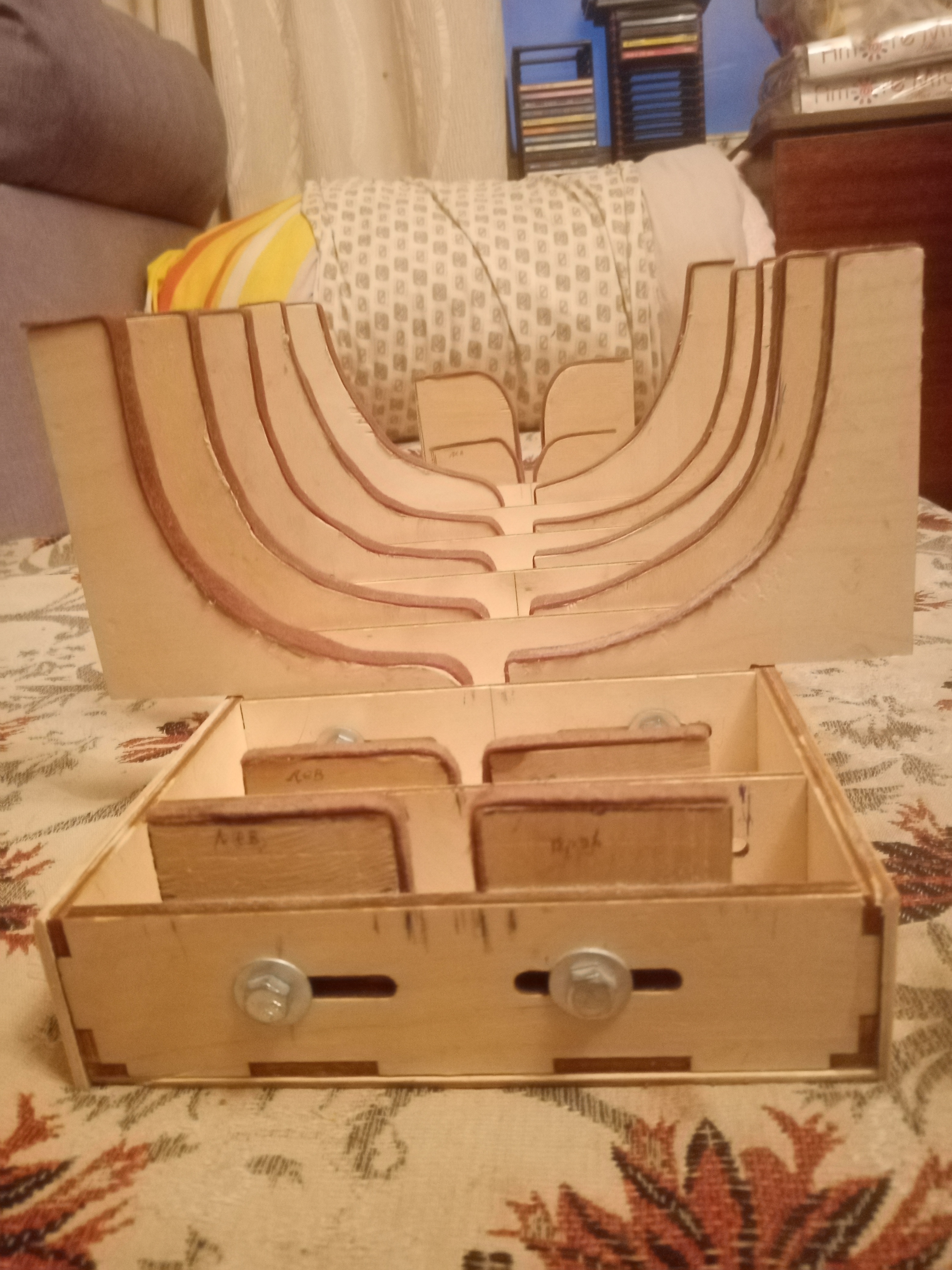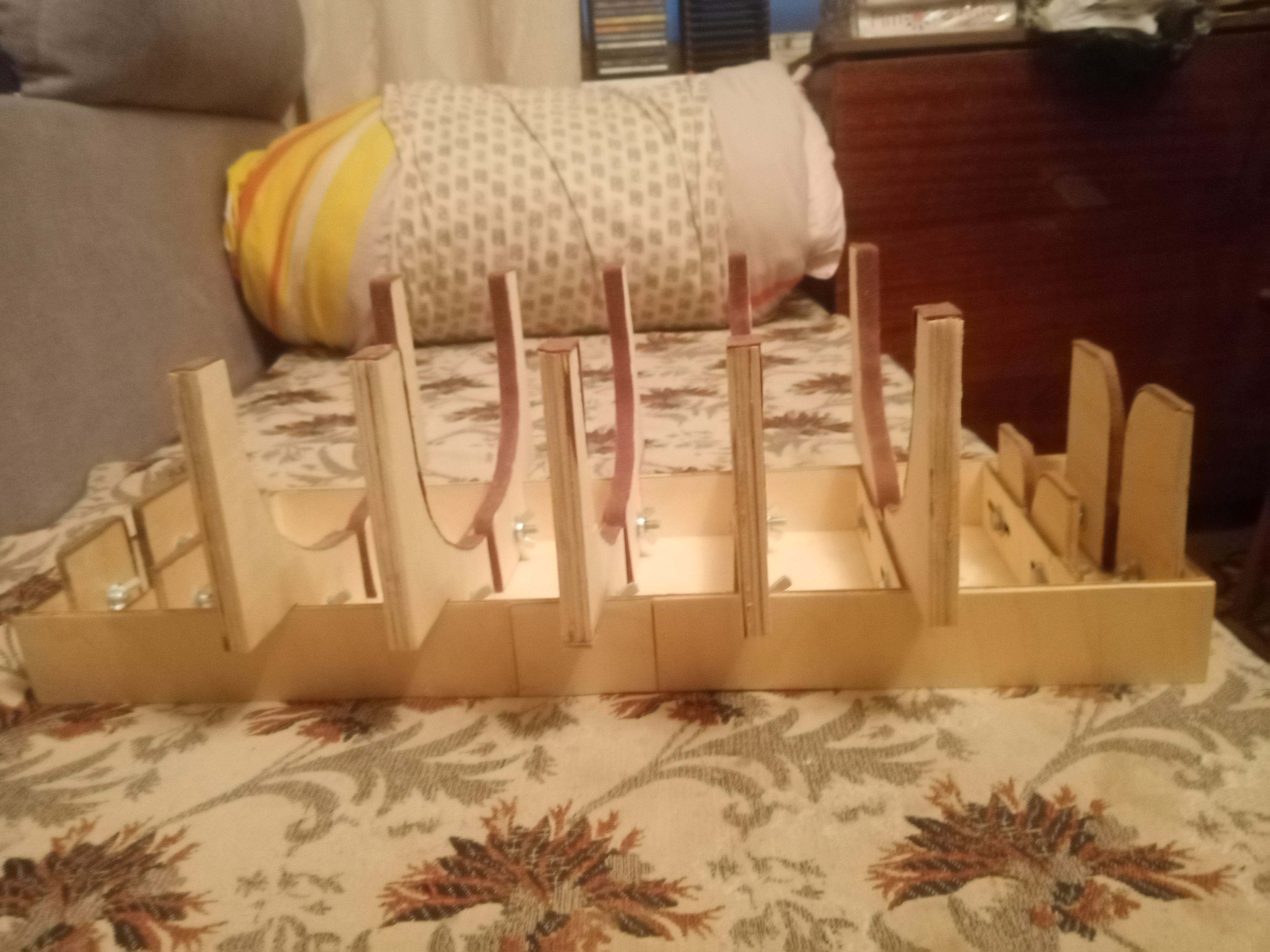 Добрый день уважаемые моделисты и участники форума о постройке корабля - Повелитель Морей - Поздравляю Вас с праздником - Днем России , моя верфь на рабочем столе продолжает свою работу - купил себе такой рабочий стапель для своего корабля - Повелитель Морей - укрепил корпус стапеля - низ каркаса стапеля - фанерными квадратами и по сторонам каркаса стапеля - фанерным полотном , склеивал на клей - АВА - в носовой и кормовой части стапеля сделал стойки и обклеил стойки - фетром 2 ным, а в середине стапеля сделал из фанеры толстые стойки - кильблоки в внутренней стороне повторяющие глубокий изгиб корпуса корабля по высоте до ватерлинии корабля , нужно этот глубокий изгиб шкурить шкурником и надфилем чистить , для обклеивания изгиб материей - фетром 2 ным - этим сейчас занимаюсь своим стапелем , с уважением Юра добра и всего хорошего и здоровья и успехов в всех делах