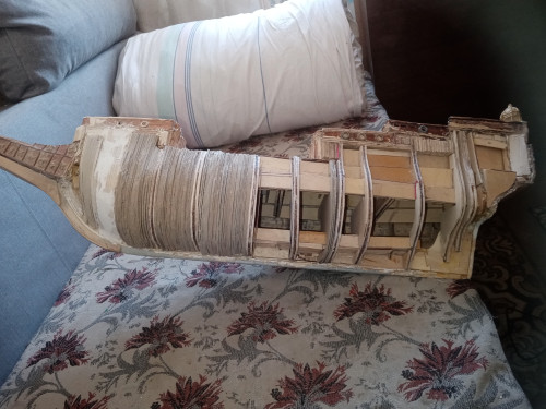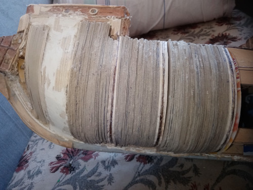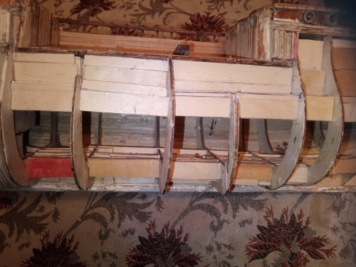 Добрый день уважаемый Керва С Н , моя рабочая подставка - стапель делал изгибы шпангоудов по изгибу собранного с старой обшивкой корабль и такие же изгибы на - 5 шпангоудов - держателей с внутренними изгибами по корпусу корабля - Повелитель - просно удерживает корпус корабля моя рабочая подставка - стапель , спасибо за письмо мне , ч смотрел ваш стапель и писали , что можно вместе панели из Бальзы , если нет в наличии у меня , есть панель из - МДФ - и из этой панели сделать шпации в виде шрангоктов и в торец шпангоута приклеивать между шпангоутами с уважением Юра спасибо за некоторую помощь мне о переделки своего - Повелителя в корпусе