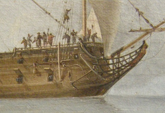 Если же обратиться к истории, то шток якоря на "Повелителе морей" был вообще без бугелей и стягивающих болтов, состоял из одной детали. На картинах современников и изображениях кораблей даже более позднего времени это отчетливо просматривается. Совпадает это также с изображением "Повелителе морей" на гравюре Джона Пэйна, которая считается специалистами наиболее достоверным источником.