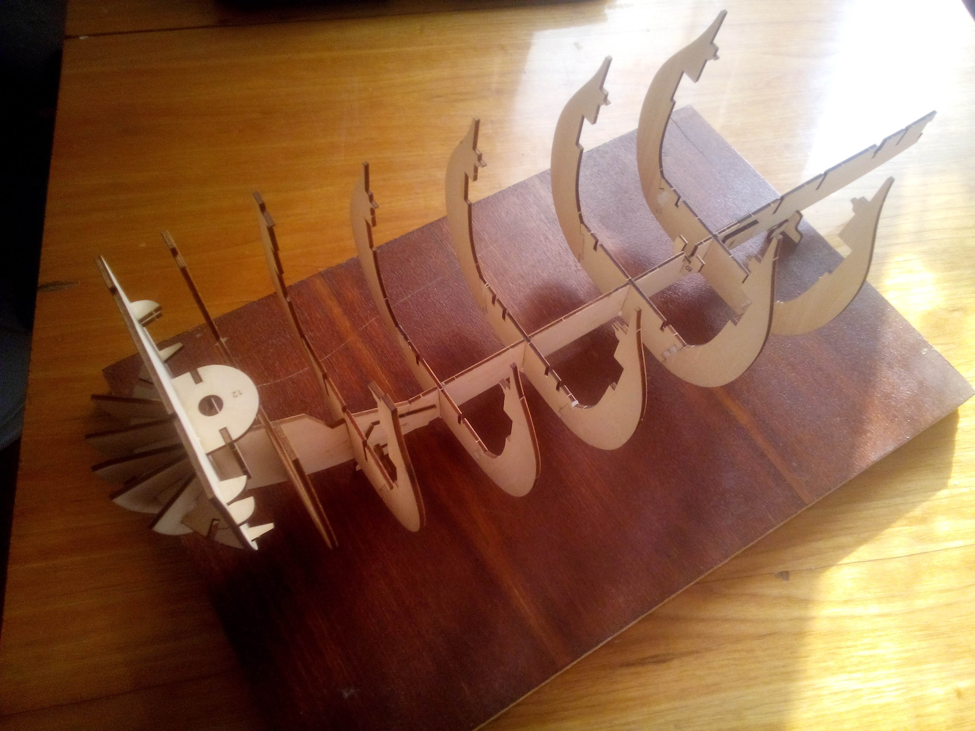 прежде чем сажать шпангоуты на клей, киль нужно было бы собрать целиком, а потом уже, клеить на него шпангоуты, может при такой сборке пойти винтом. (извиняюсь за тавтологию)