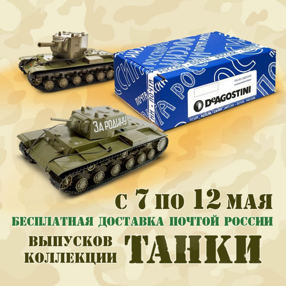 Только с 7 по 12 мая при заказе военной бронетехники на сайте https://www.deagoshop.ru/ru/product/tanki/ вы получите БЕСПЛАТНУЮ ДОСТАВКУ ПОЧТОЙ РОССИИ. Акция действует на все модели из коллекции «Танки - легенды отечественной бронетехники», а также на модель ЗИС-151 «Катюша».