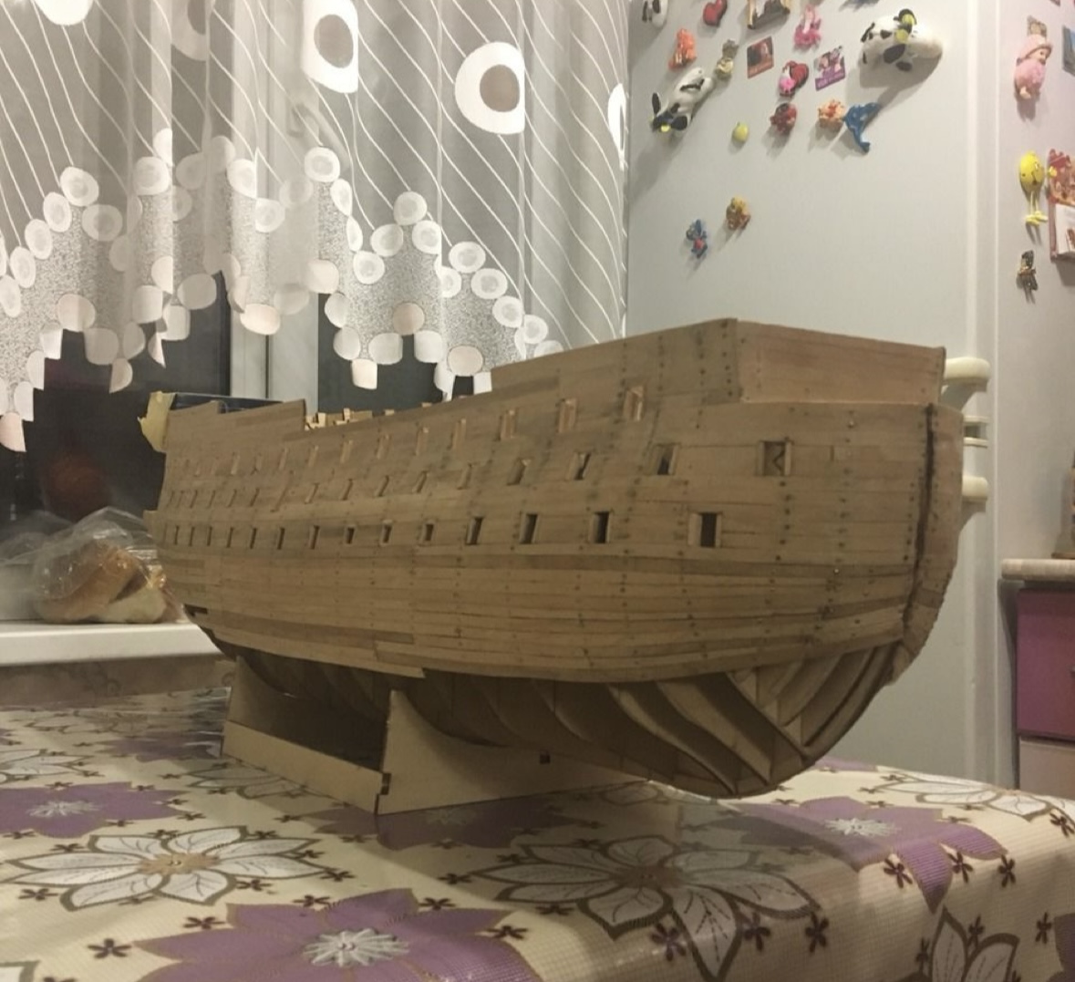 Начал собирать, из 15 журналов, частично готов корпус корабля: