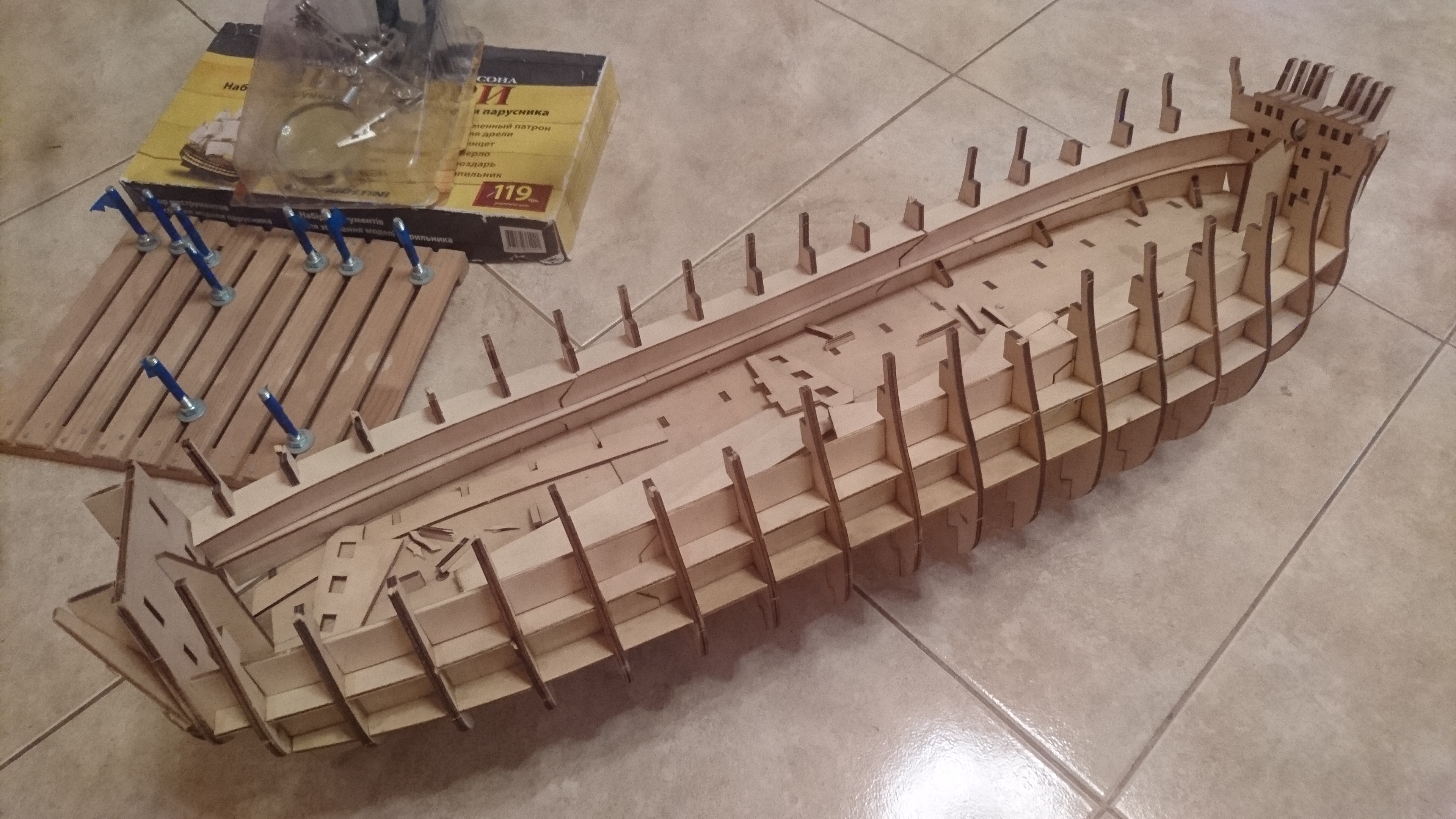 Начал собирать, из 15 журналов, частично готов корпус корабля: