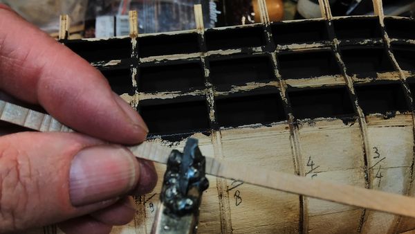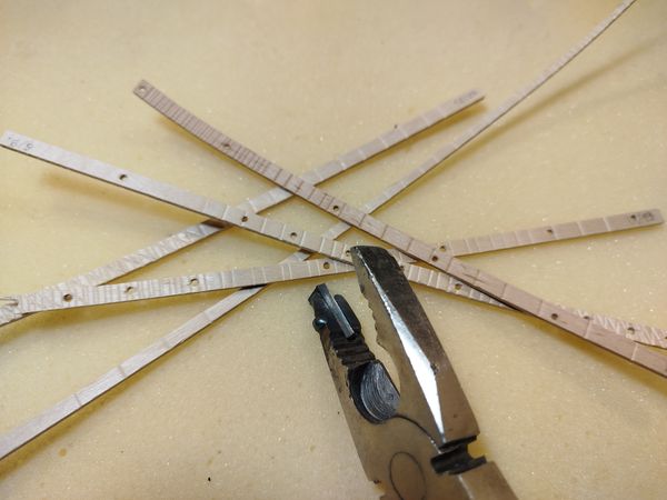 • каждую рейку после сгибания я буду крепить миниатюрными шурупами к шпангоутам и иным поверхностям в зонах заполнения шпаций;