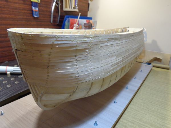 Всё. Никакого другого специального оснащения или инструмента я не использовал для черновой обшивки корпуса модели. Это, конечно, не считая отвёртку, модельный нож со сменными наконечниками, различные шкурки, ручную и электрическую дрели, свёрла.