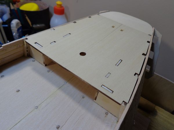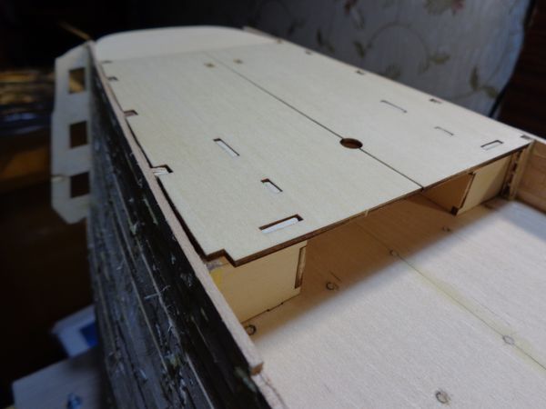 Переборки офицерских кают оказались ниже на ~ 2 мм и палуба полуюта (из двух частей) со стороны переборок офицерских кают заваливается ниже верхней кромки обшивки.