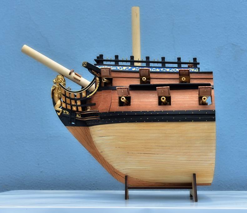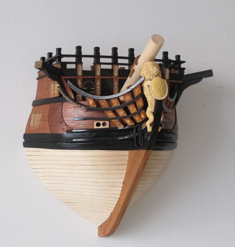 Я рад нашей новой встрече! Спасибо! Моя модель очень интересная, по крайней для меня. Сознаюсь. Я её купил нечаянно и неожиданно даже для себя. Китайская фирма выпускающая её, создаёт свои КИТы в масштабе 1 : 50. Среди своих моделей, "Носовых сечений модели линкора она предлагает модели с фок - мачтой и без оной". Моя без фок - мачты. Я же подумав решил, что строить полный бушприт без фок - мачты будет в какой то мере нелепо. Ну а добавляя к сечению корпуса корабля рангоут, паруса и такелаж всё это получится довольно громозким сооружением, особенно в наших довольно скромных по площади комнатах типового панельного дома.