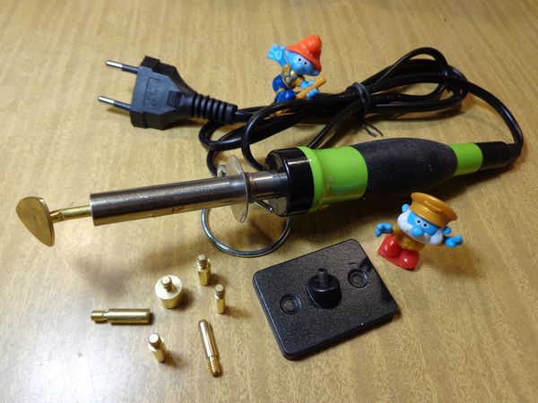 В конце концов — поиски необходимого устройства привели меня на “OZON”, где в ряду различного вида и цен термоаппликаторов я нашёл такое устройство по цене 960 рублей РФ. Там в наборе имеются различные наконечники (8 шт.) для приклеивания стразов, включая “утюжок” и ещё какая-то большая чёрная плитка размером со спичечный коробок, так я и не понял для каких дел. Купил я этот термоаппликатор, попробовал — работает.