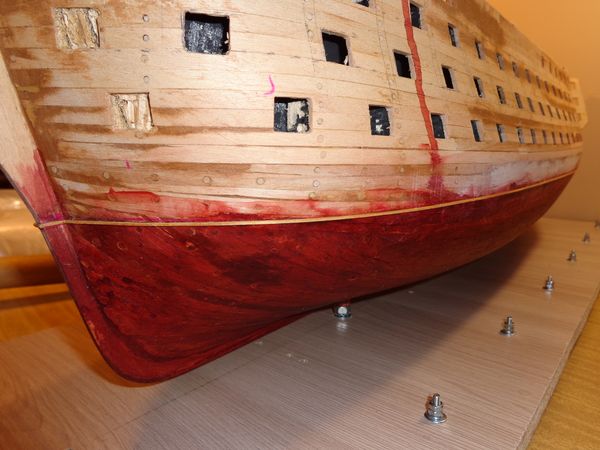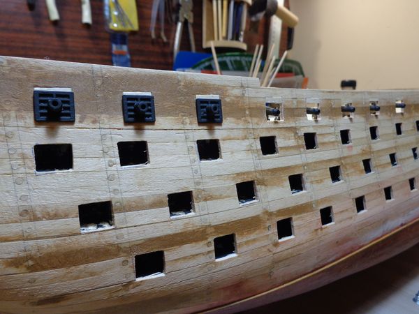 • мой — я не прорезал насквозь черновой обшивки два пушечных порта в носовой части, по обе стороны от бушприта. Не внимательно прочитал руководство в части прорезки пушечных портов квартер-дека;