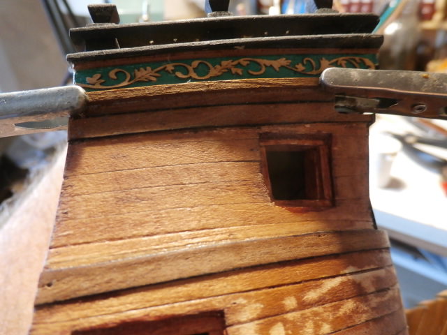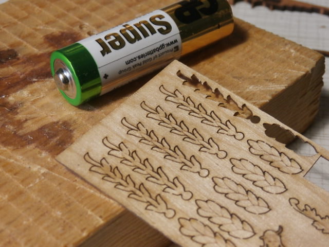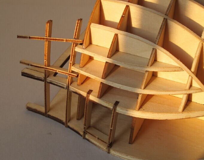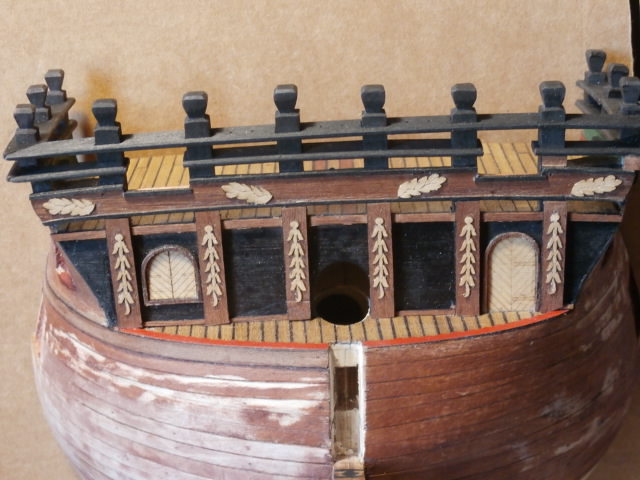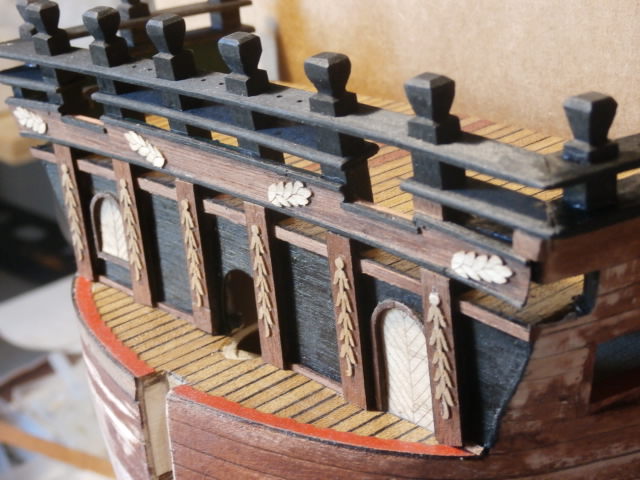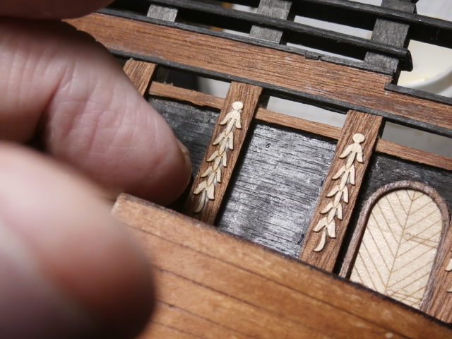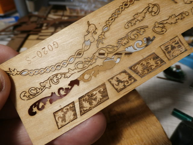 Производители КИТа позаботились о покупателе вложив две маленькие пластинки : Вырезанные лазером украшения из тонкой 0,5 мм деревянной пластинки и вторая пластинка фототравление навесы дверей и портов модели.