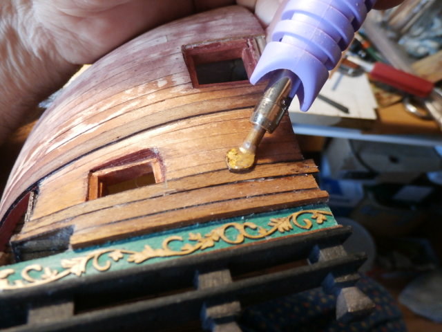 Работы с сечением носовой части линейного корабля "Ингерманланд" продолжаются. Я закончил черновую обшивку модели и приступил к чистовой обшивке. Темп работ к сожалению снизился. Сказывается присутствие различной декоративной мелочевки. Но для меня, как судомоделиста интерес к работе возрастает. Боюсь что то пропустить в очередности установки деталировки модели. Я уже писал, что инструкция в сборке модели КИТа написана на китайском языке, иллюстраций не много, так что сборка, строительство не много запутанно. Но с другой стороны - если что то получилось, получаешь массу положительных эмоций, удовлетворения и гордости, что разобрался в этом китайском хитросплетении и идешь в верном направлении... Удачи Вам и конечно Здоровья!