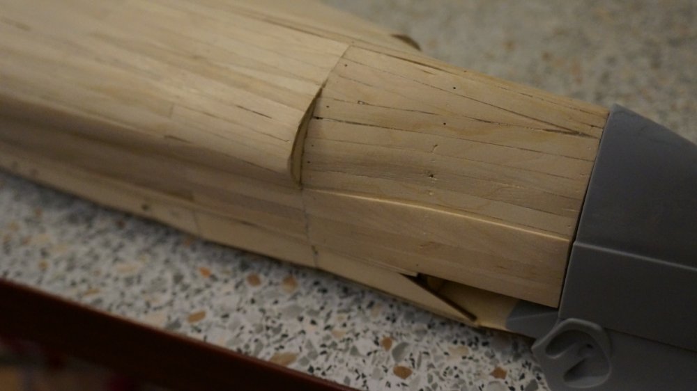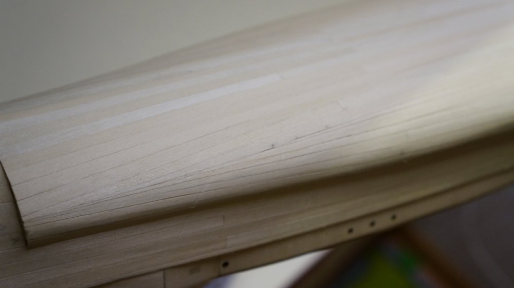 Верхний срез всех металлических бортовых полос идёт вровень с черновой палубой. Чистовая получается будет укладываться внахлёст сверху......