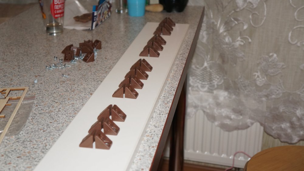 Использовал как основу стапеля ДСП 16 мм а уголки пластмасовые (мебельные),металические уголки имеют разные углы 86градусов, 94,но не 90 градусов