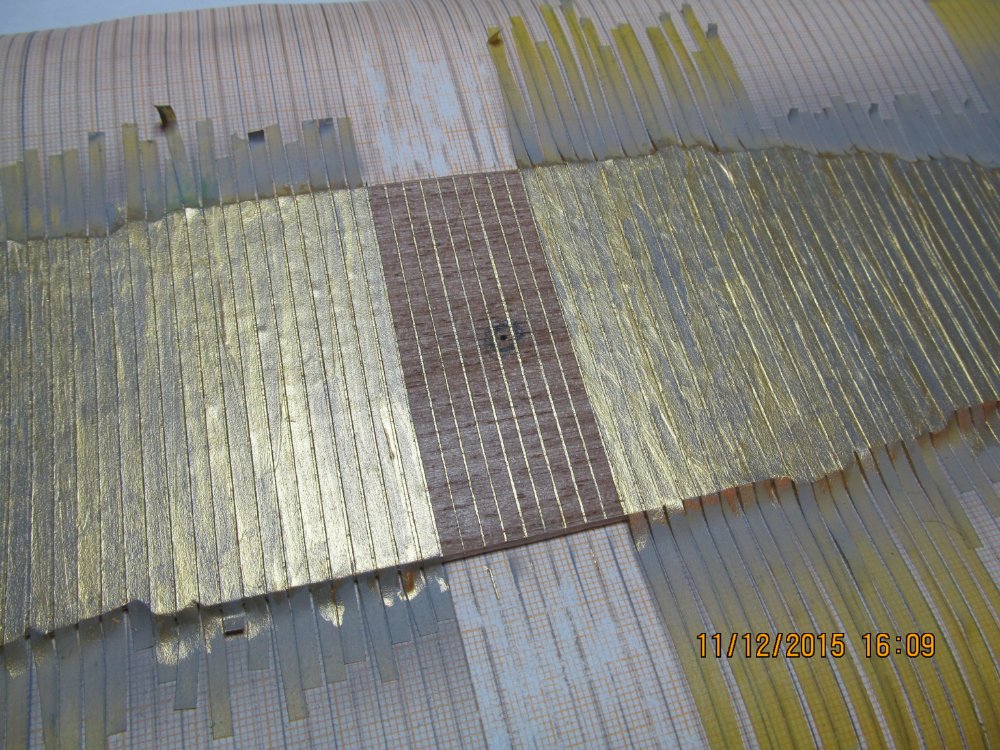 Эти тонкие полоски будут использоваться впоследствии для имитации поперечных полос из мюнц-металла на палубе модели.