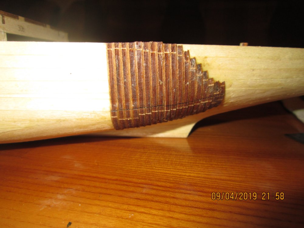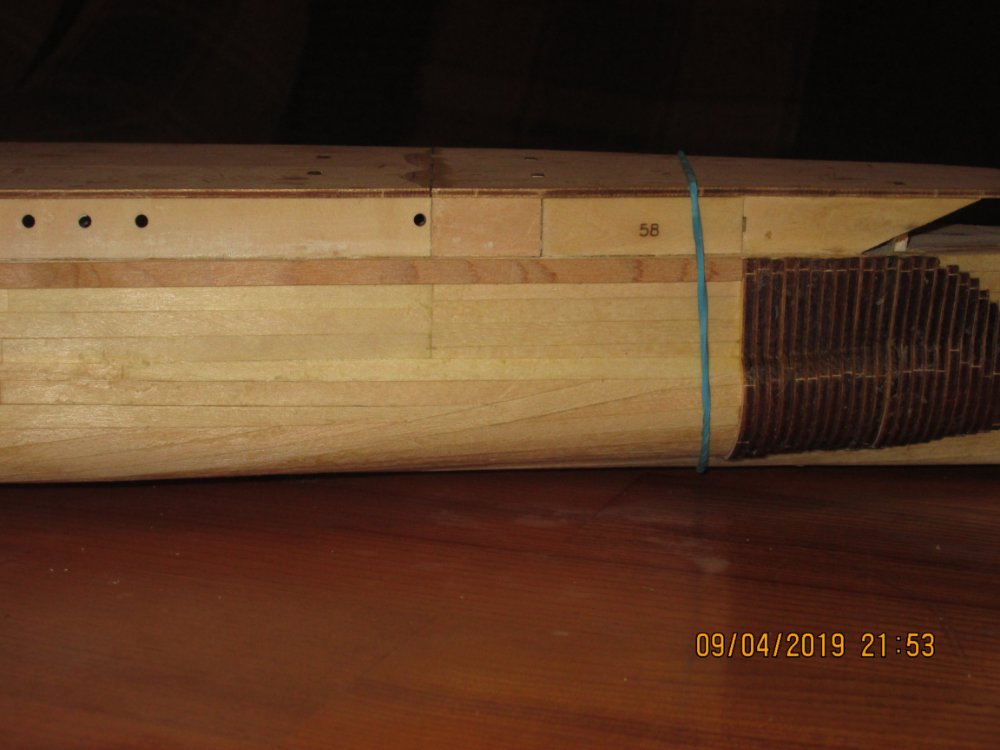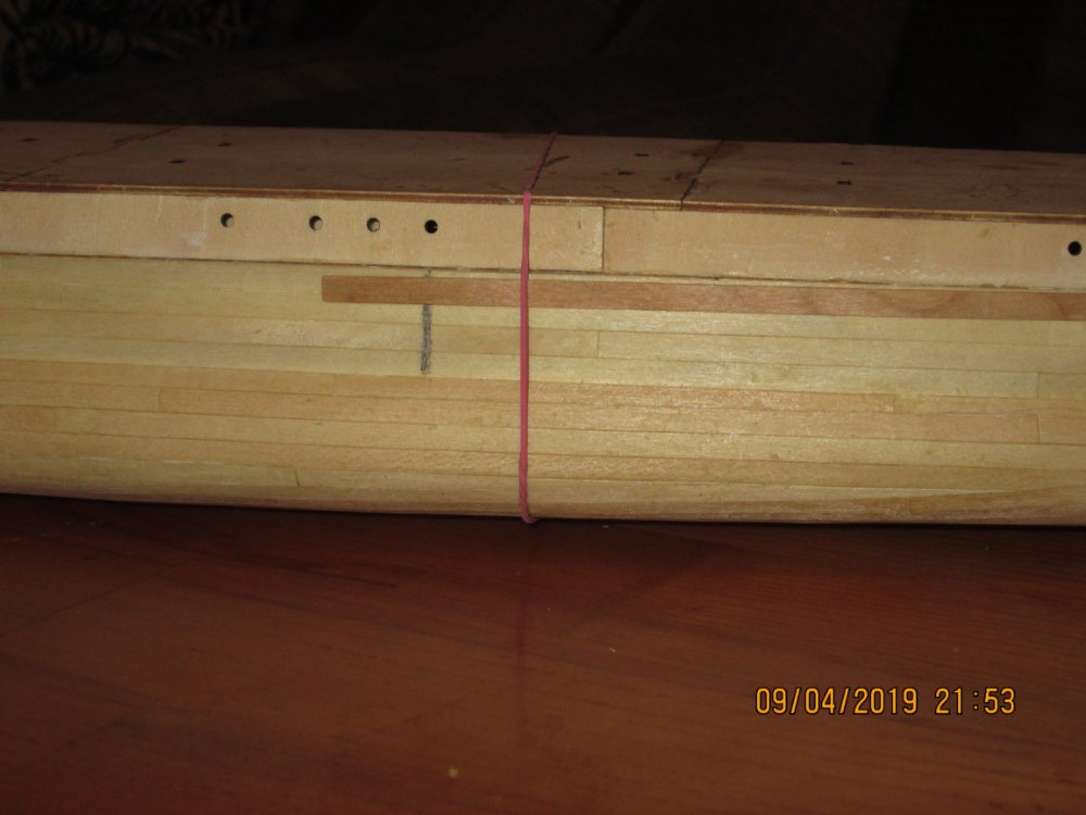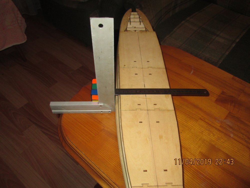 У меня сделана черновая ( шпаклевал и шкурил) и чистовая обшивка ( без обработки) Замеры делал по расположению 70 шпангоута (согласно чертежу) Самая большая ширина борта- по середине корпуса - 73 мм*2=146 мм. Издатель заявляет ширину 163 мм. Разница в 17 мм я считаю существенной для такой модели. Фото замеров ниже