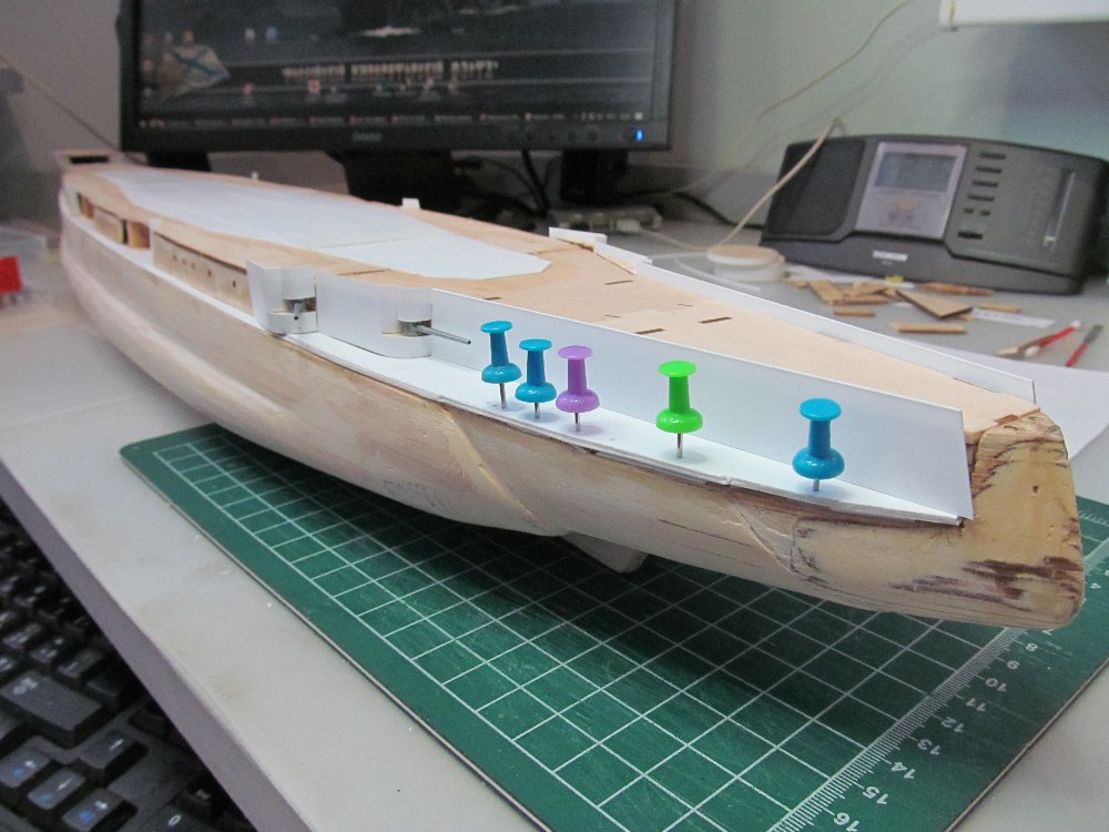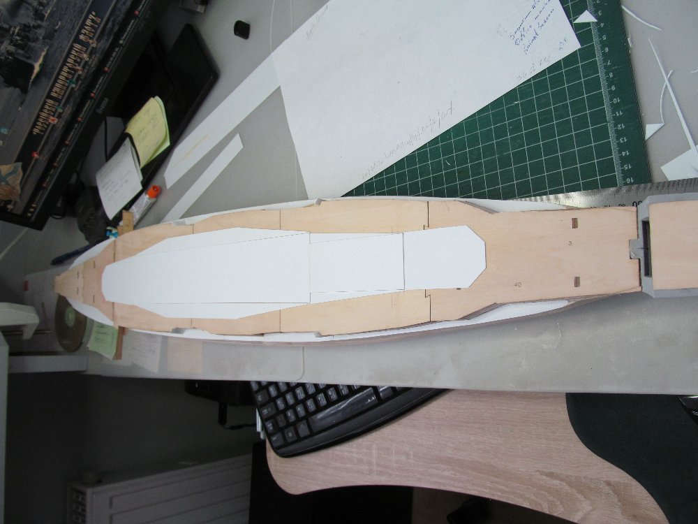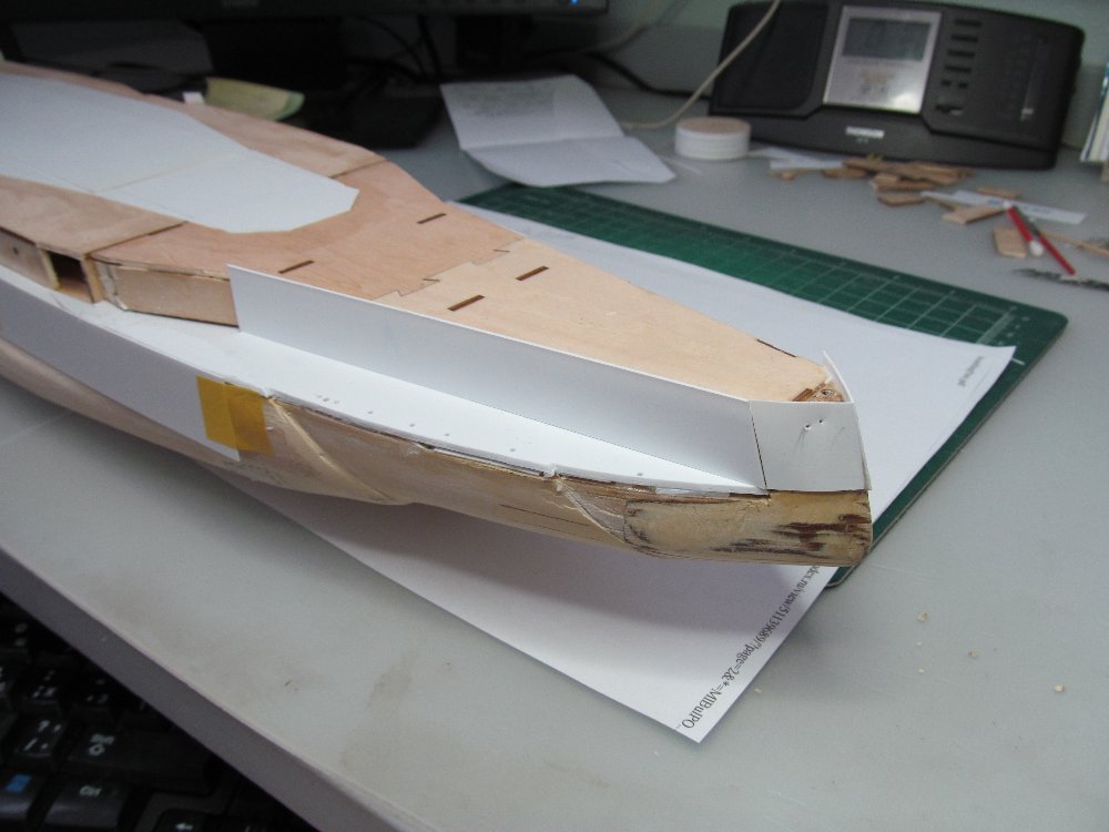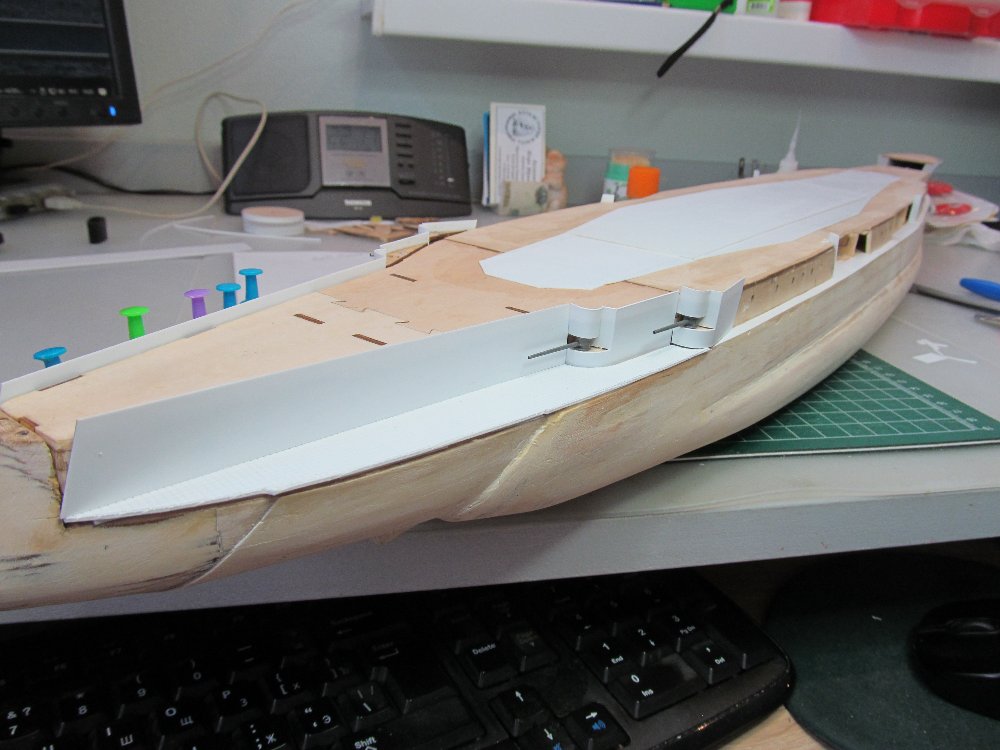 Для имитации погиби верхней палубы нарастил среднюю часть пластиком от 1,0мм до 0,4мм.