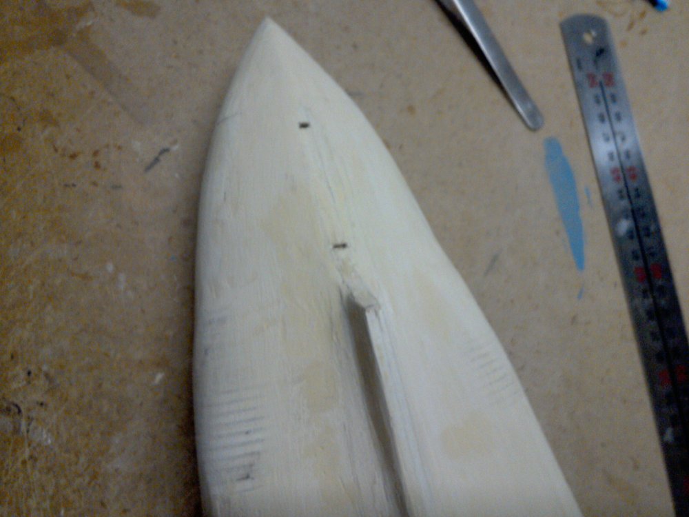 Привет! Так нужно было их аккуратненько сохранять..... я гвоздики вставлял, когда шпаклевал. Оси перьев рулей ведь потом туда вставлять нужно будет.