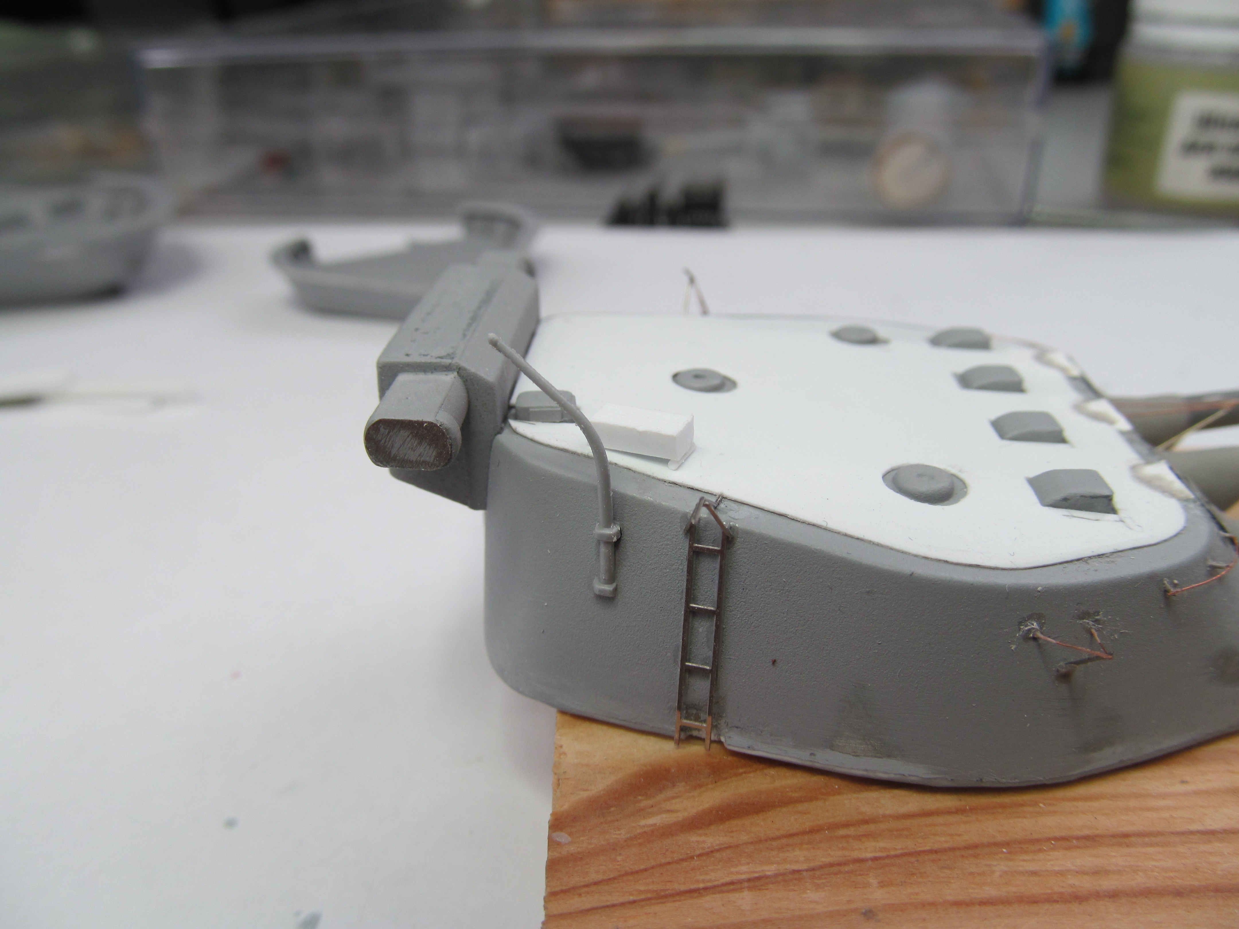 В носовом установил дополнительные кранцы первых выстрелов и оголовники элеваторов подачи снарядов.