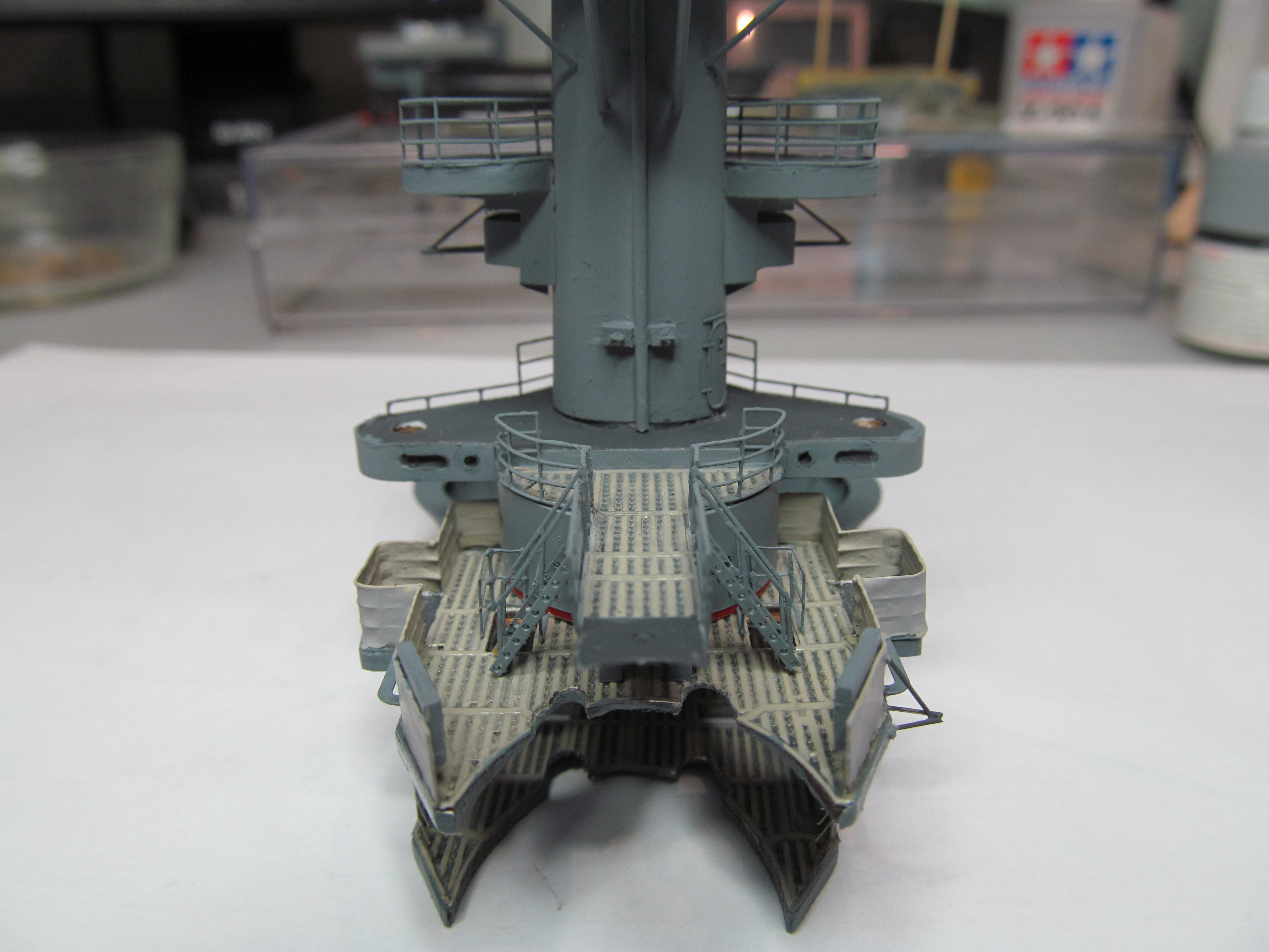 Откуда взяли спецы из ДеАгостини, что на первом ярусе носовой надстройки были установлены ДШК - мне неизвестно, ни фотографии ни чертежи этого не подтверждают.