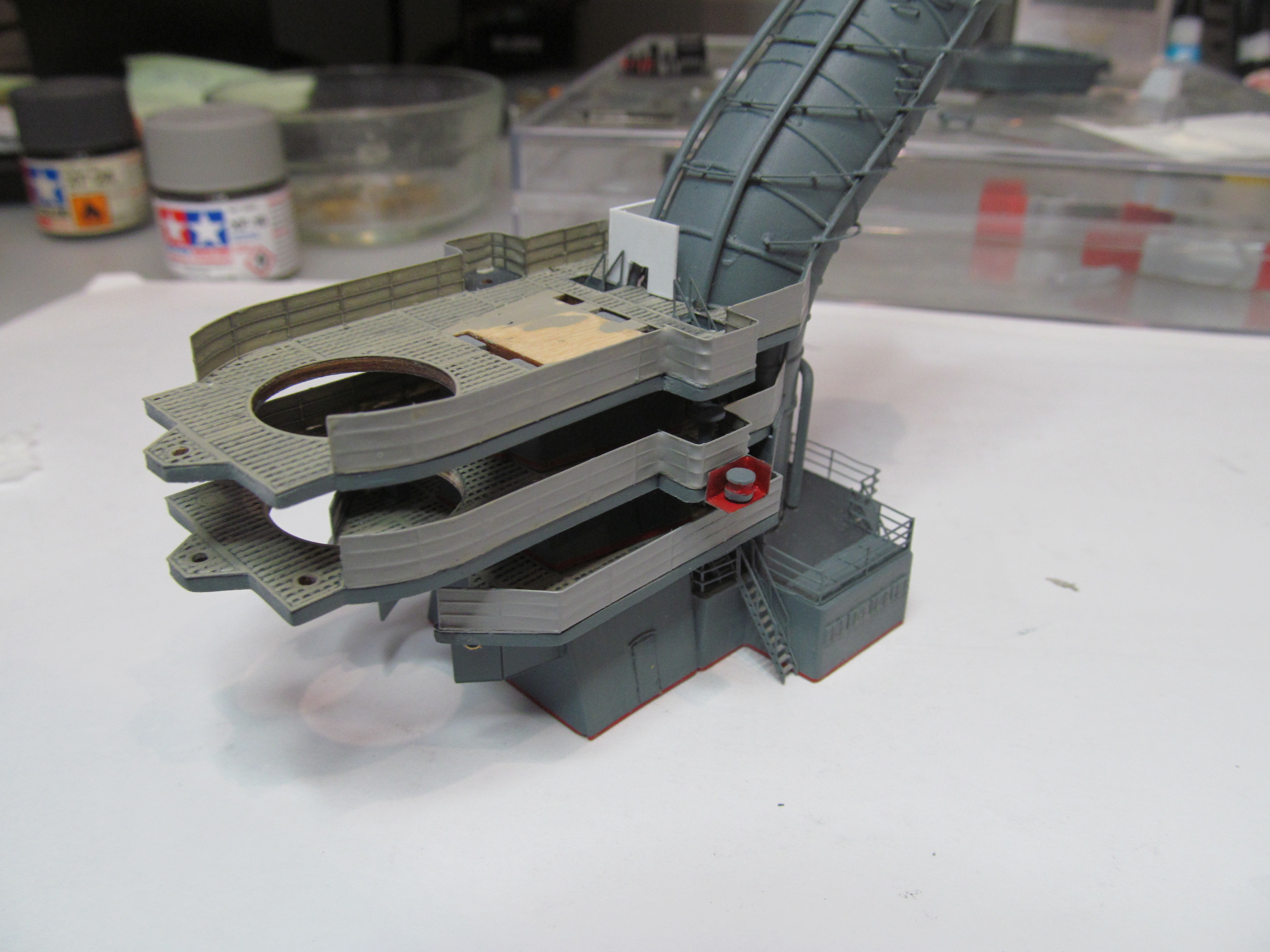 Закончил сборку носовой надстройки до 4-го яруса включительно и второй дымовой трубы.