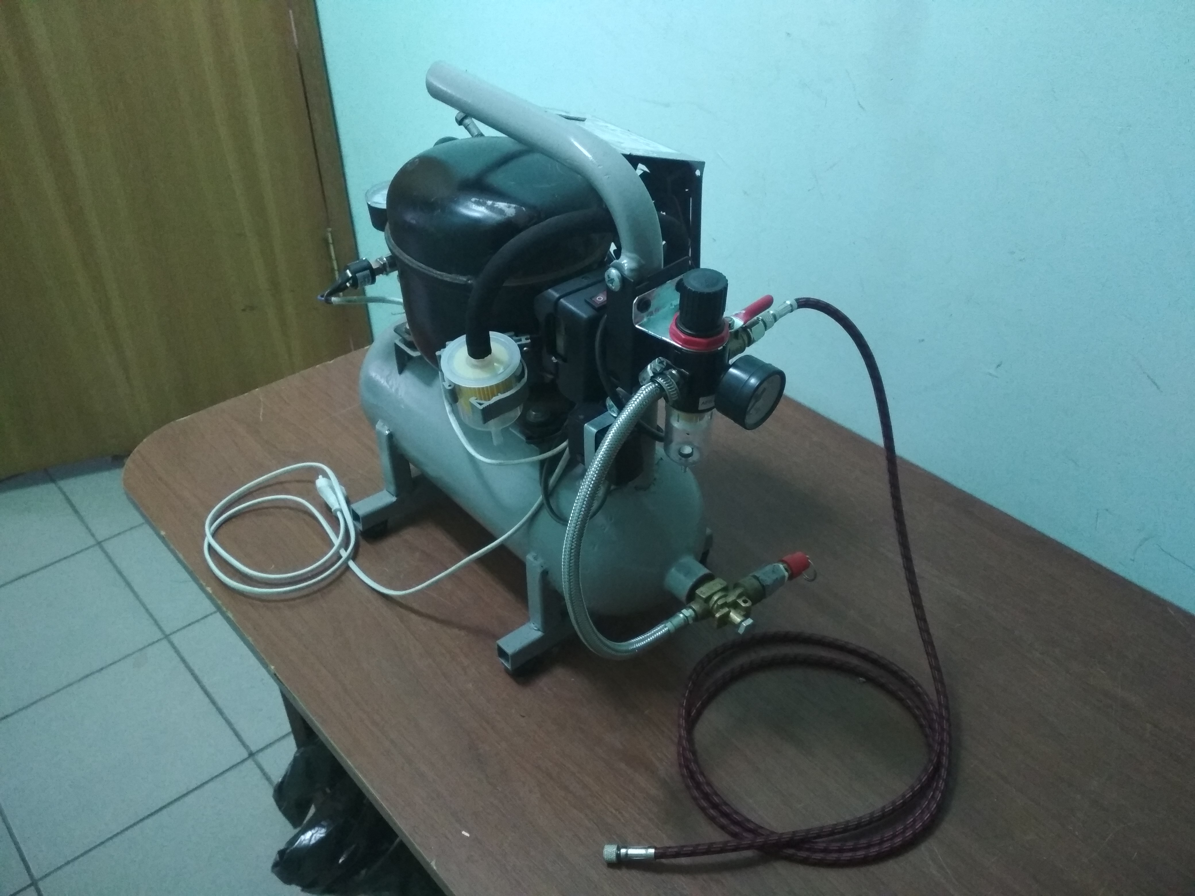 У меня был компрессор для аэрографа, сделанный из компрессора от холодильника. Поэтому знаю как он устроен. Компрессор очень быстро выгонит масло в магистраль, так как у самого механизма нет картера, и маслосъемных колец и т.п.. В холодильнике магистраль компрессора "закольцована", а у вас магистраль разделена. Может конечно, сейчас уже компрессор устроен по другому, но я ставил масленку - капельницу и фильтр масло отделитель. Делал на компрессоре от бытового холодильника, и от холодильного прилавка, разрезал корпус и оставлял компрессор в кожухе, все мне не понравилось. Не то.михаил викторов писал(а): ↑09 ноя 2020, 09:39 Да, компрессор от холодильника.В каждом компрессоре для смазки залито масло примерно 150-200 грамм. Ресивер- старый огнетушитель. Качает до 8 атм. потом отключается. При снижении давления до 6 атм. снова включается. Работает бесшумно.