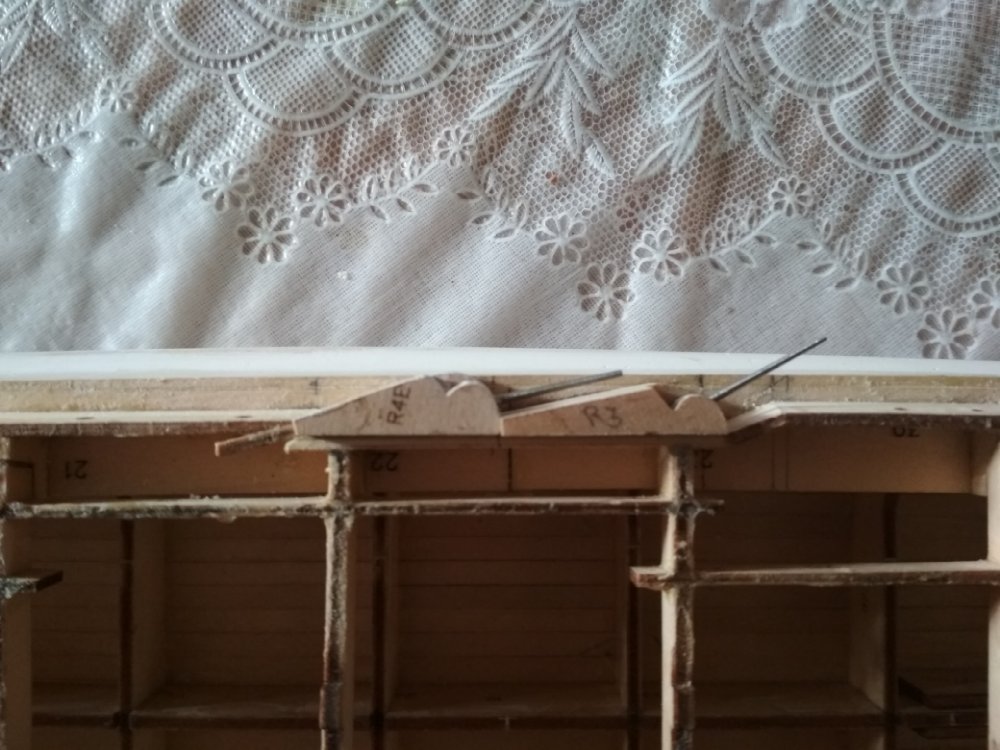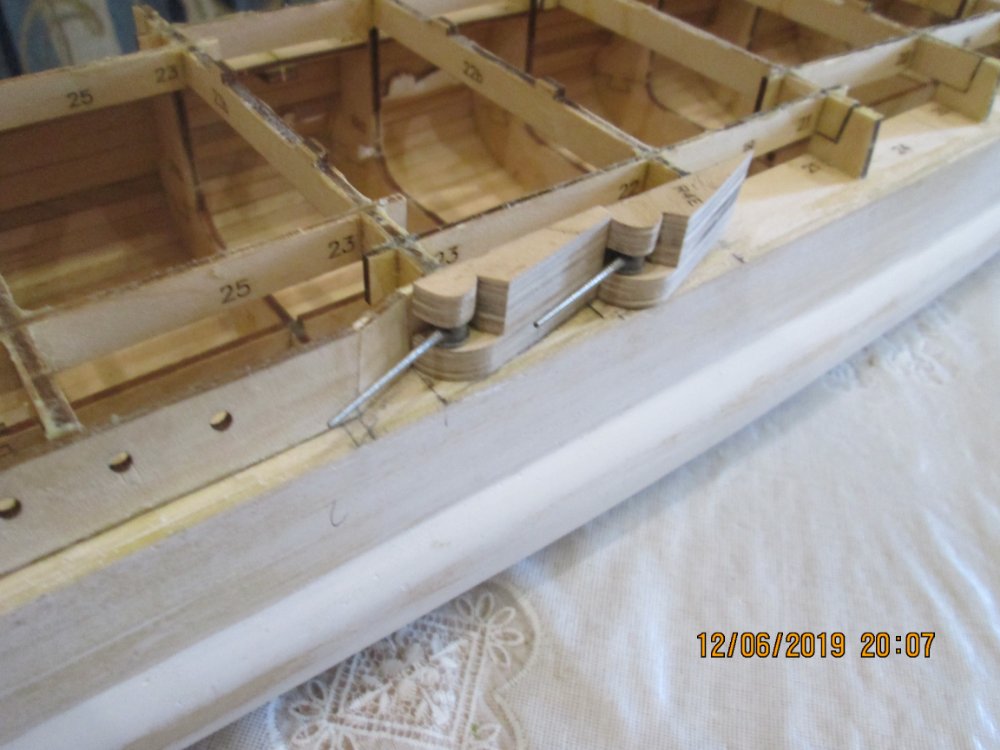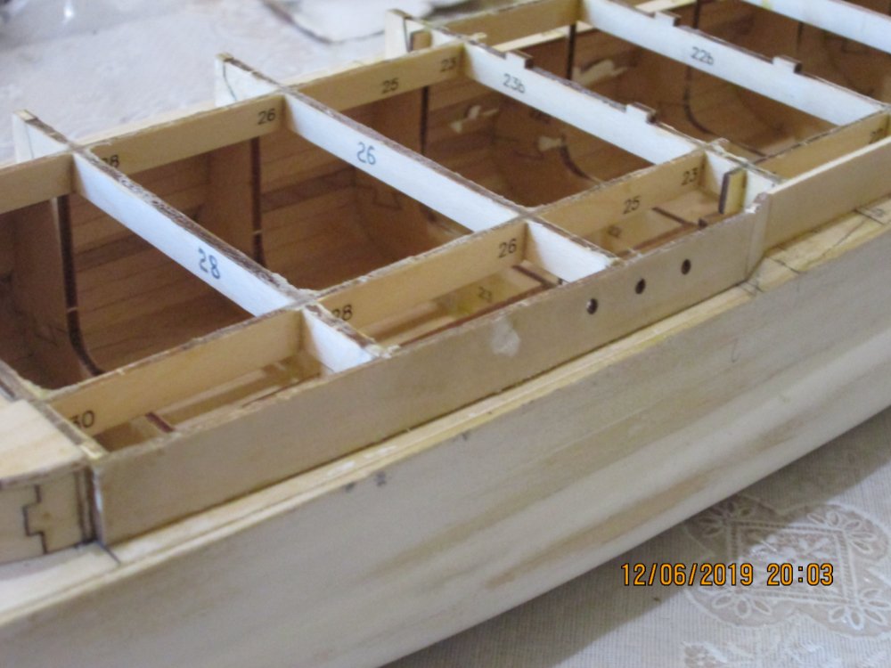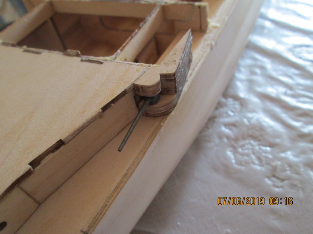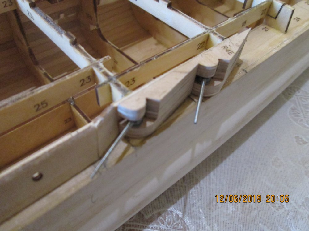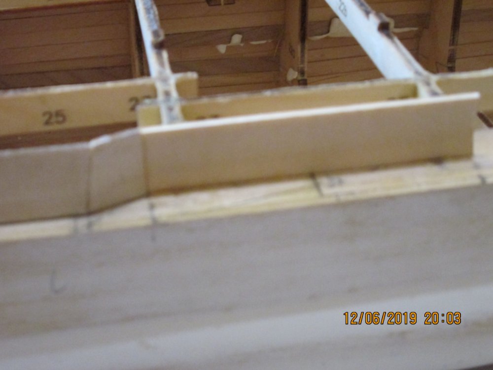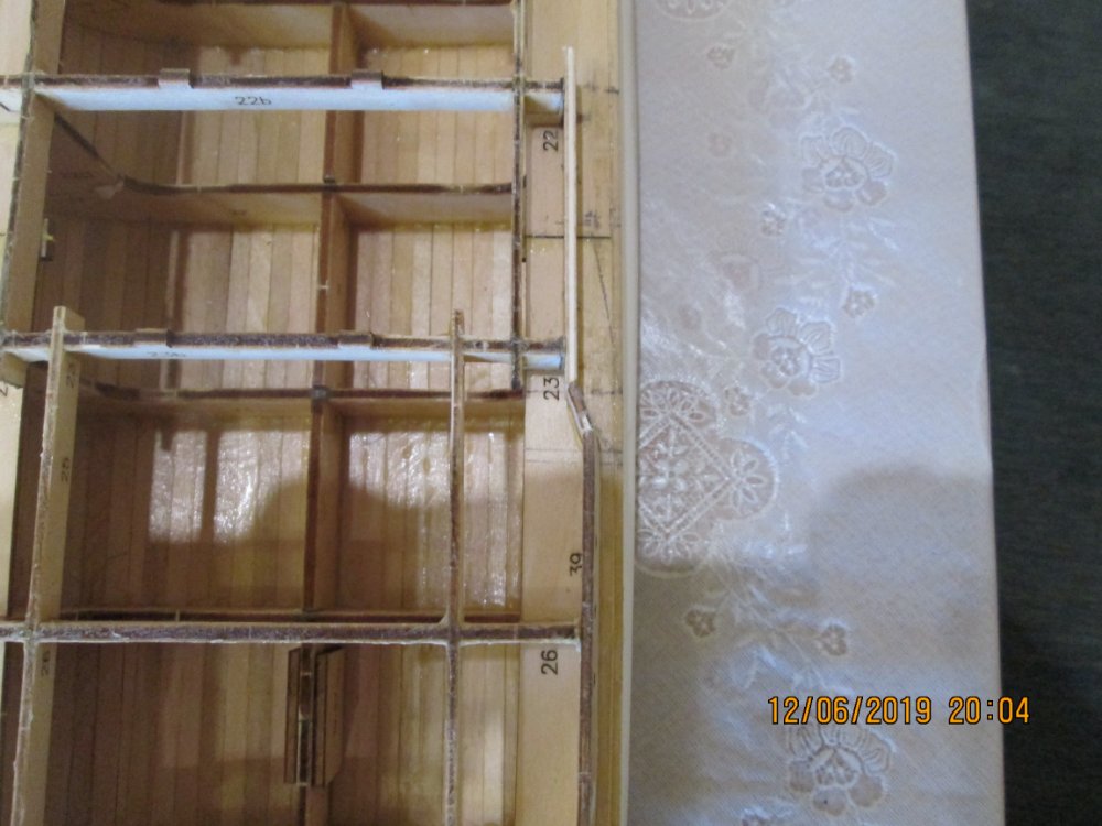 И еще: когда переделывал борт, столкнулся с одним нюансом. На травлении есть вертикальные риски. Как я понял они указывают место расположения казематов. Так вот. Когда размечал расположение каземата №8 приложил травление. Риска не совпадала ни с чем. Когда укоротил деталь 58 и примерил, то риска четка встала с началом каземата. И так с другими тоже. У меня сложилось впечатление, что мы работаем с двумя разными комплектами деталей. Травление правильное (разметка под казематы, иллюминаторы). Деревянные детали-нет.