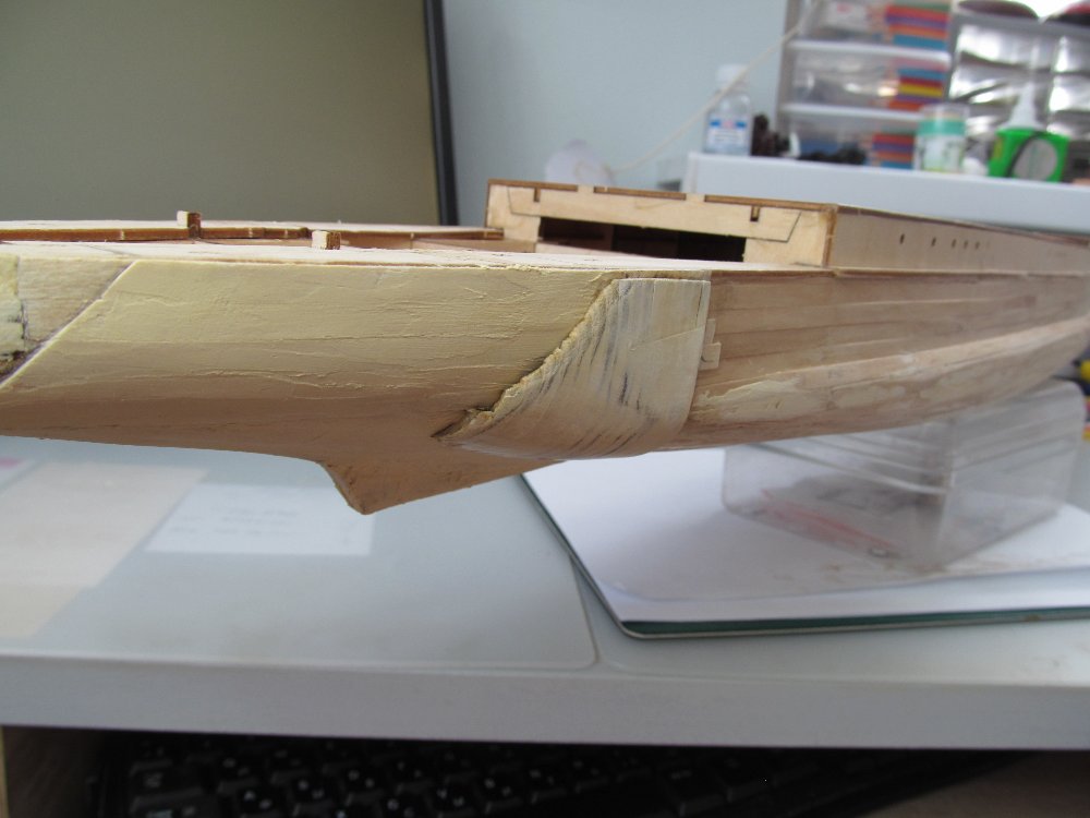 Алексей! Спасибо за чертежи! Их бы мне увидеть раньше! По корпусу уже сделал чистовую шпатлевку. А теперь буду думать. Верхнею часть булей я нарастил, но видно не до конца.