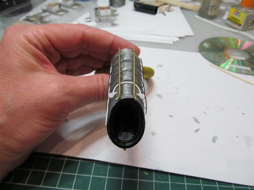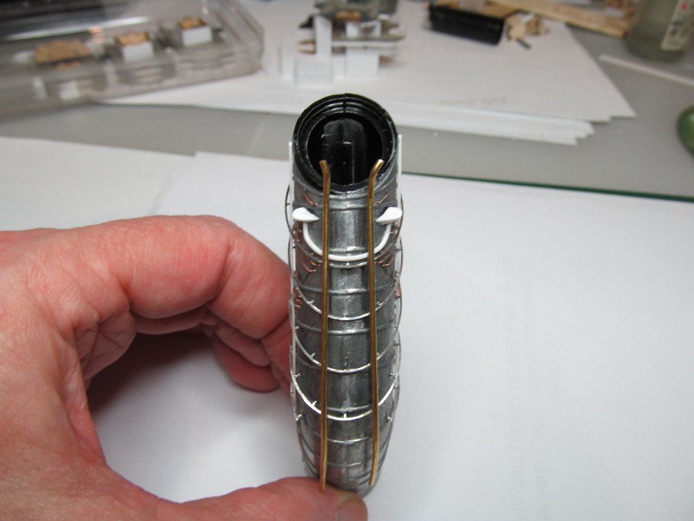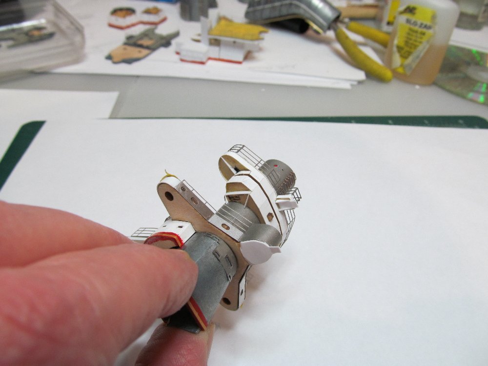 А ещё посмотрел, и не понравилось мне как я скрутил из пластика башенку на носовой надстройке.