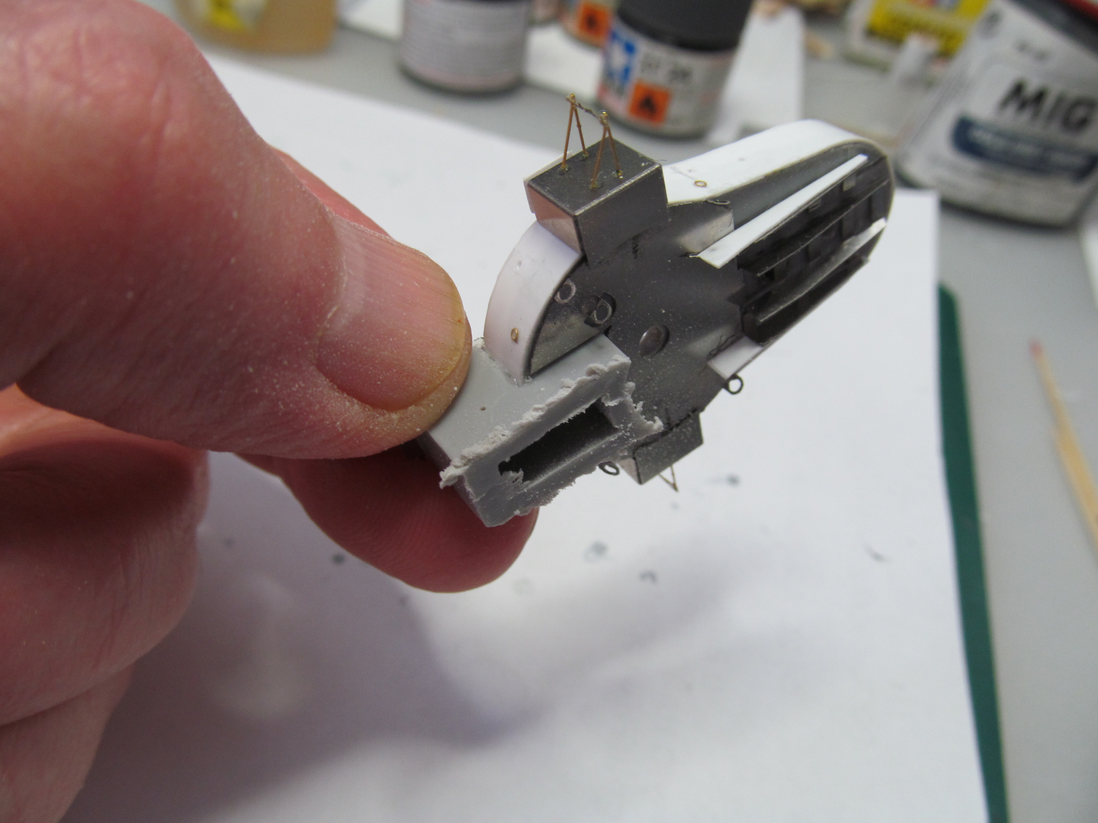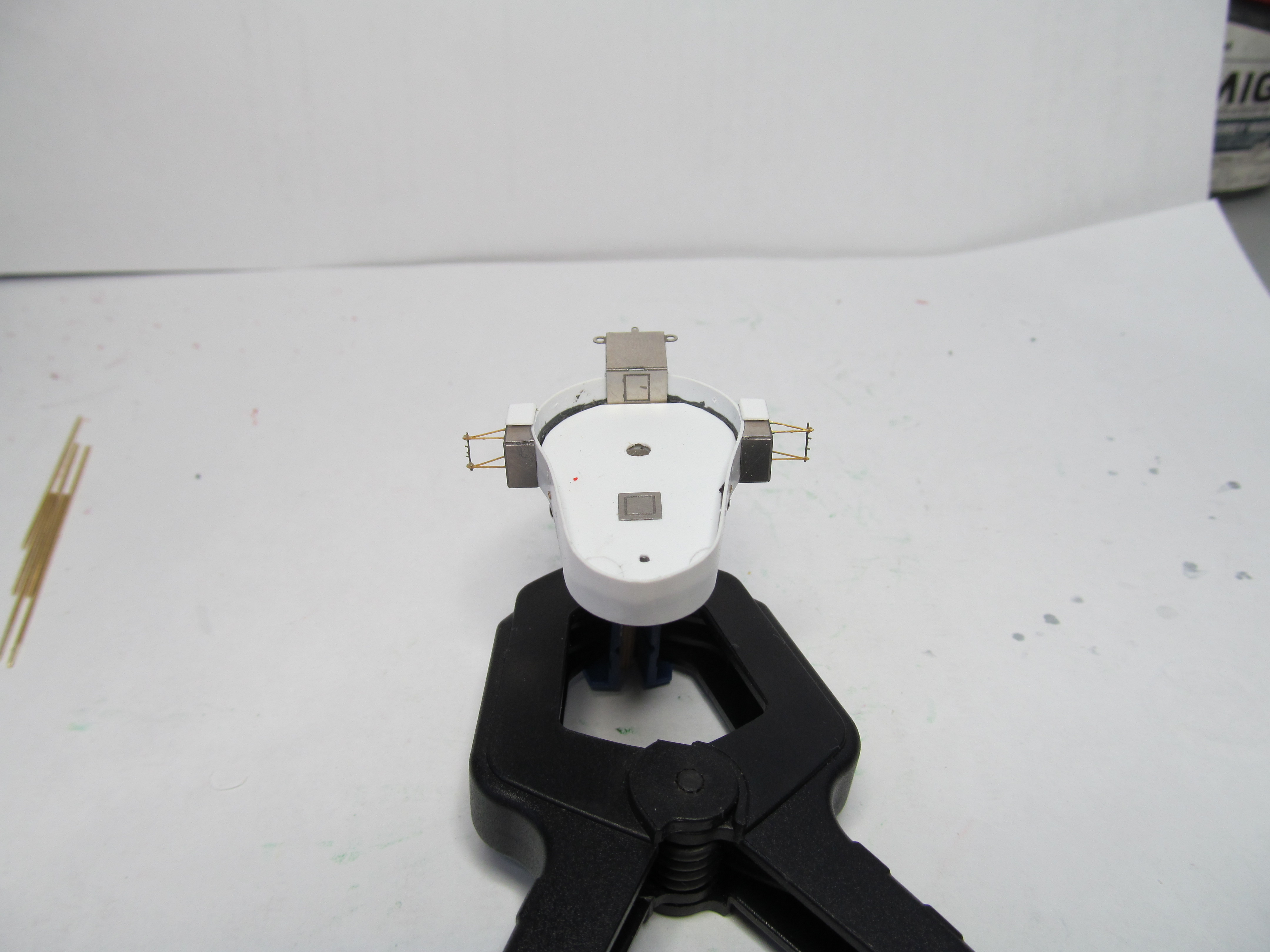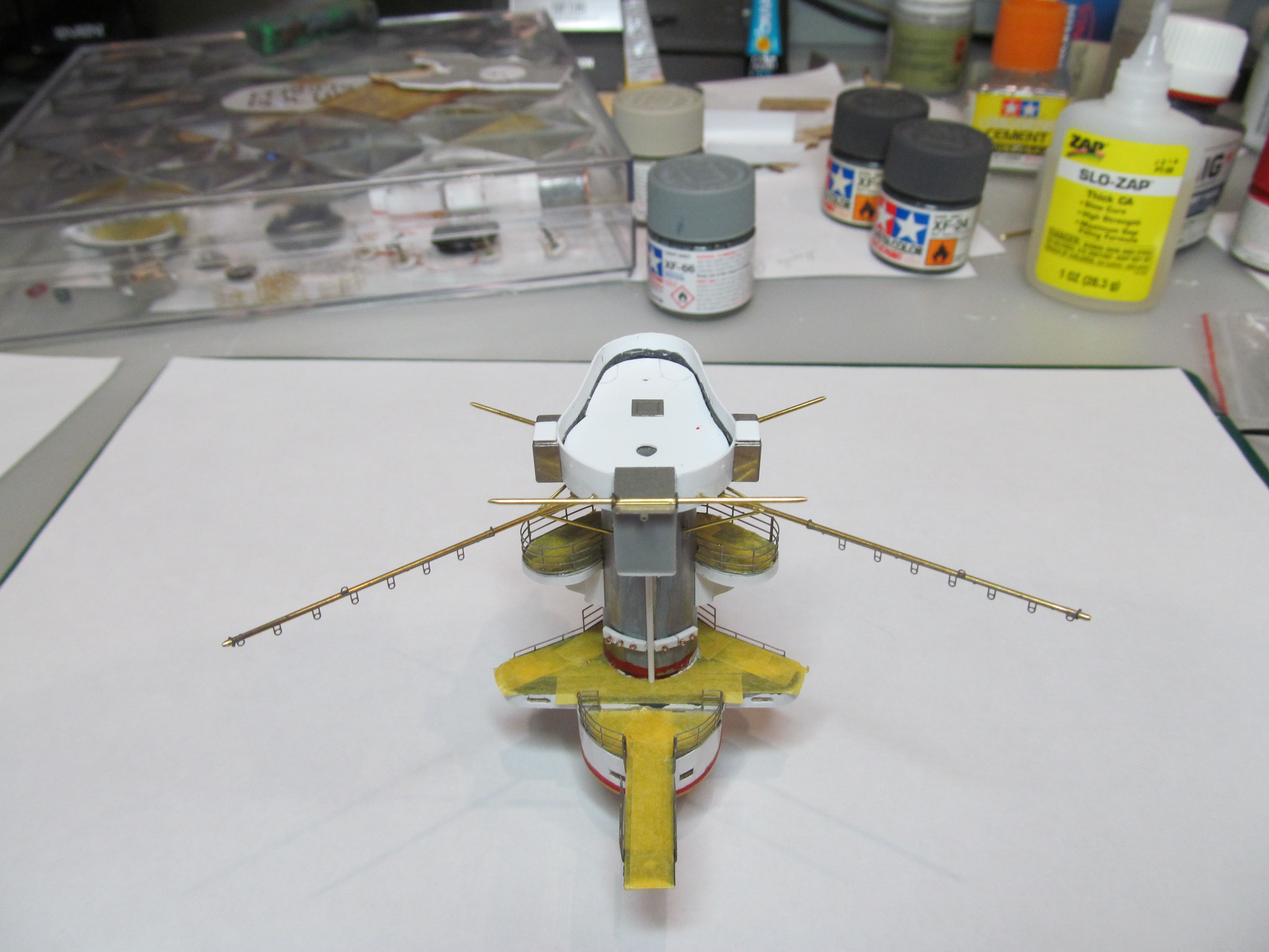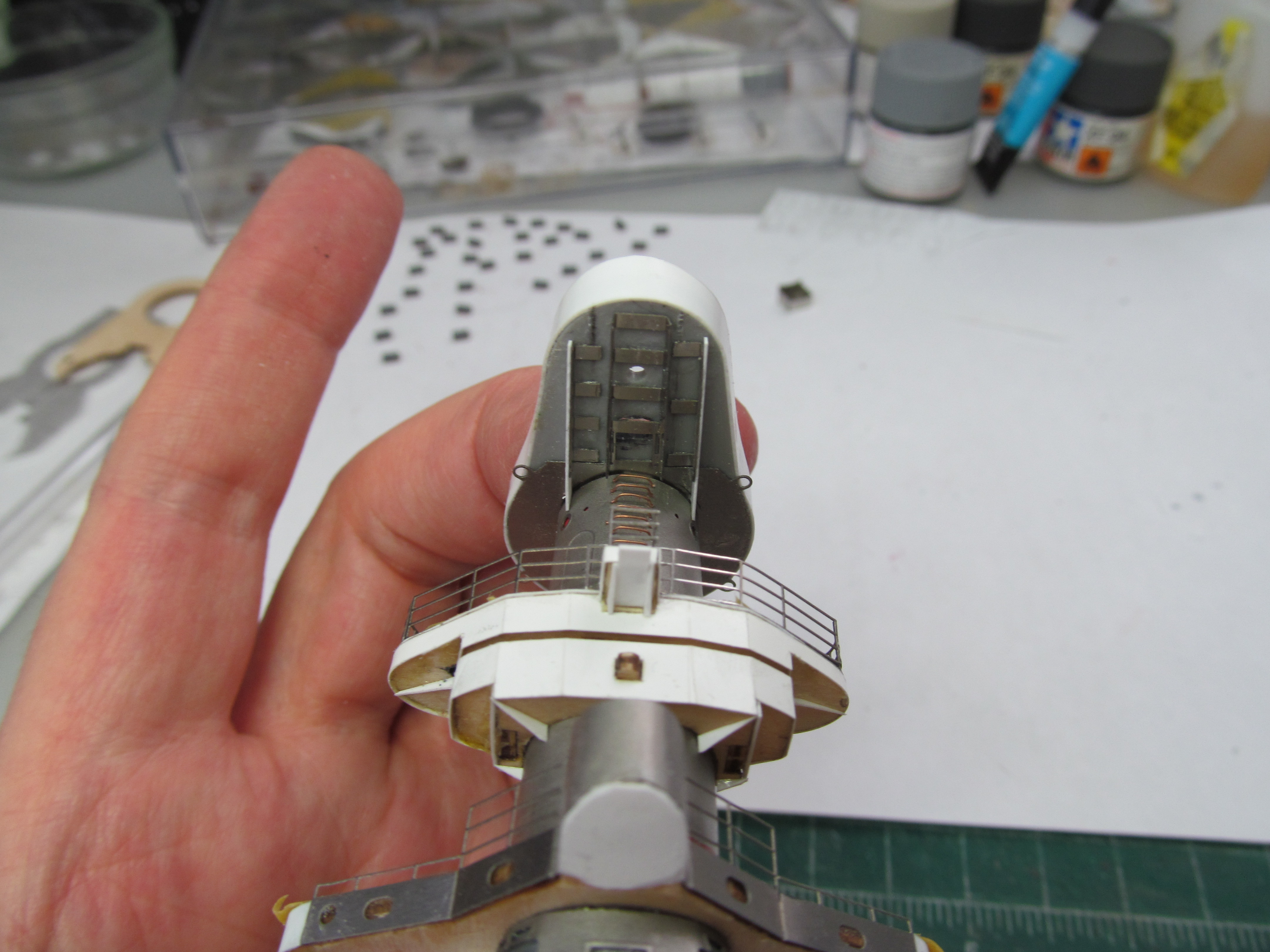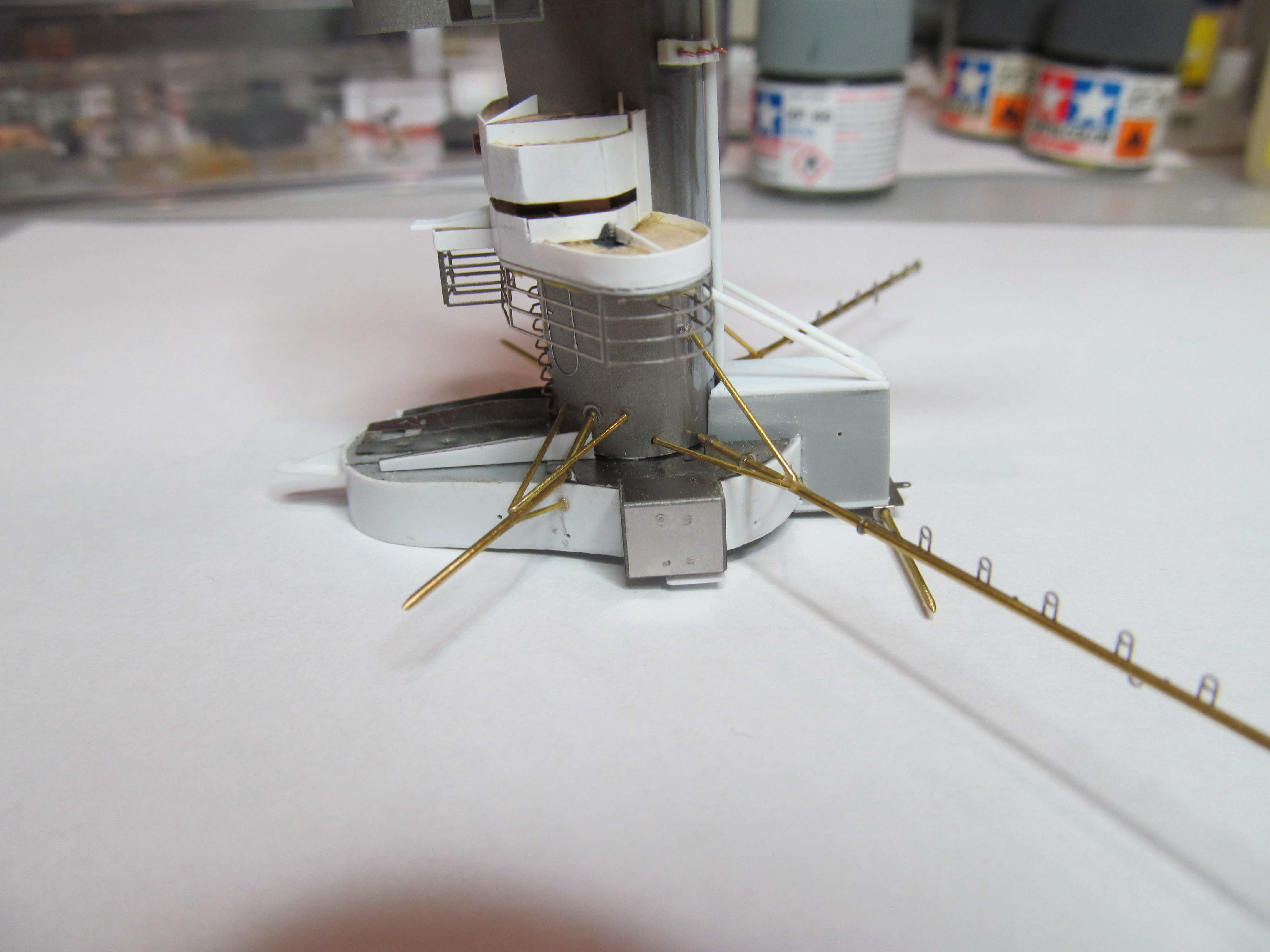 Одел в парусину леерные ограждения 5-го яруса носовой надстройки, установил ящики для сигнальных флагов (ДеАгостини почему-то про них забыл).
