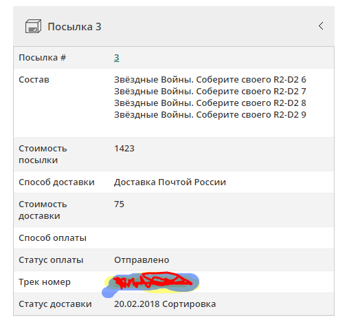 Прошу пардону,а что проверить трек-номер на сайте ПР нельзя? Что панику поднимать-то?Денис Котов писал(а): ↑21 фев 2018, 09:32Сегодня утром скидка в личном кабинете проставилась. Спасибо!Forum Admin писал(а): ↑21 фев 2018, 09:31Позвоните, пожалуйста, на ГЛ, оператор проверит подписку. Скидки всем подписчикам пересчитали ещё в первый раз, после сбоя.Денис Котов писал(а): ↑21 фев 2018, 00:56 Скидка и во второй раз не проставилась. Отправление уже в пути, стоимость как и в прошлый раз без скидки. Опять сбой?