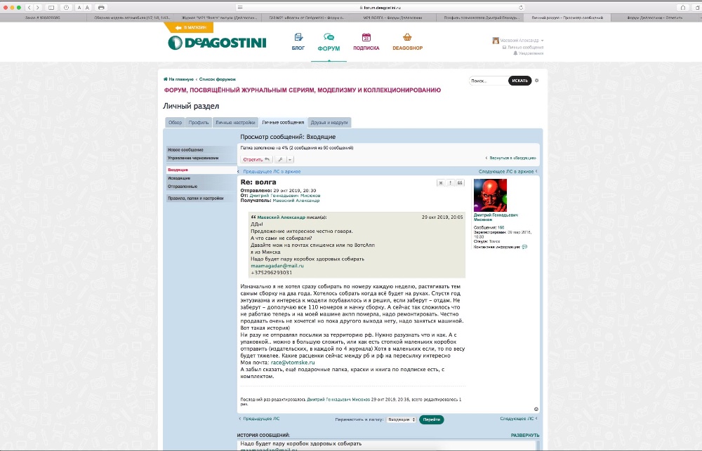 Я по простоте душевной считал, что здесь нет козлов:))) Вроде единомышленники??? 29окт написал сюда. Собирался сделать заказ на все вышедшие номера М21. Спрашивал как, что... Отозвался один из "постояльцев" местных (у него несколько сотен постов). Предложил у него выкупить все номера до N85. Списывались неск раз здесь и по Е-почте. В конце концов я перевел на карту его мамы:) 20.000руб. Ну и все пропал Томский соловей. Я ему писал неск раз. Молчок:))) Дмитрий Геннадьевич Мисюков. Он в нескольких темах писал. Развивал деятельность. Я конечно расслабился, привык жить в белорусском климате:) Думал и здесь порядочные парни, нет шмокодявок. А вот и нет! Будьте внимательны!