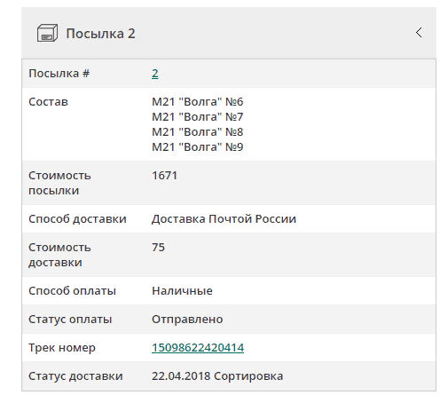Не знаю как со списанием(ибо получаю с наложкой),но моя уже едет,завтра должна быть на почте....Рушан Бариевич Хусяинов писал(а): ↑22 апр 2018, 20:06 Люди добрые, подскажите у кого на сегодняшний день (22.04) списали средства за 3-ю посылку. Вроде как пора уже.