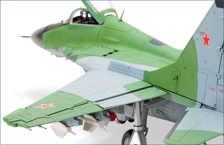 Наша модель вполне конкретна - является точной копией истребителя МиГ-29 («изделие 9-12», выполненная в цветах двухцветного камуфляжа). Стандартный набор не предполагает перекраску, но вы можете экспериментировать самостоятельно, будем с интересом следить за вашей сборкой и покраской на нашем форуме.