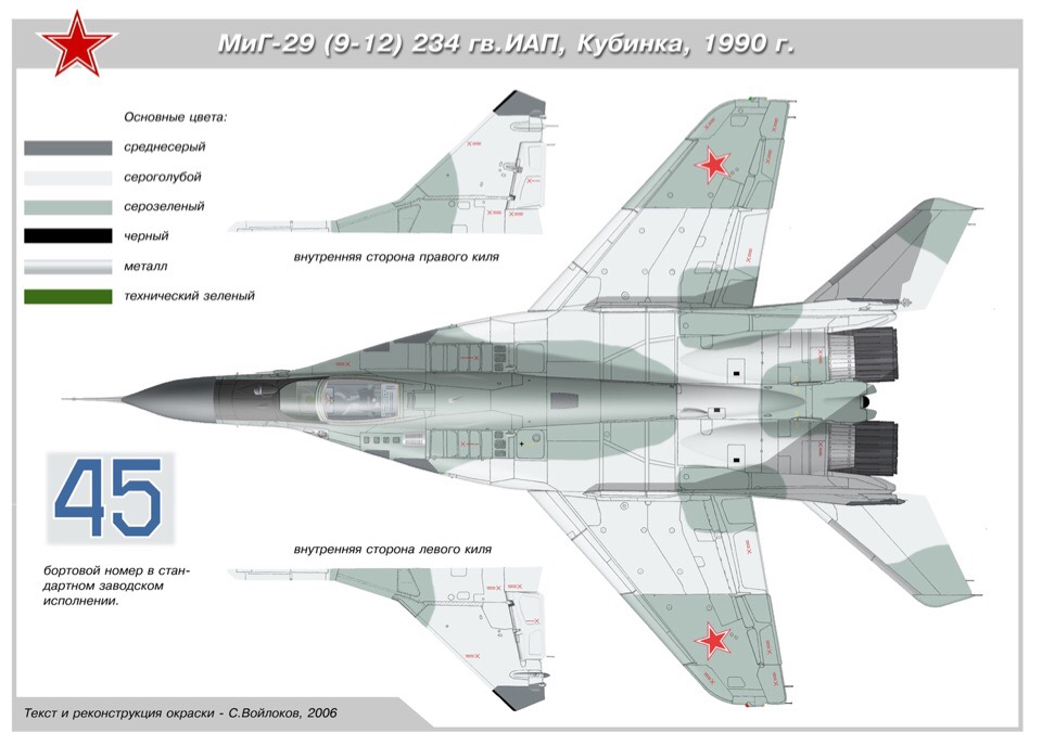 Посмотрев архивы по разнообразию камуфлирования самолета МИГ-29 изделие 9-12 нашел "базовые" окрасы, которые предлагал завод изготовитель.