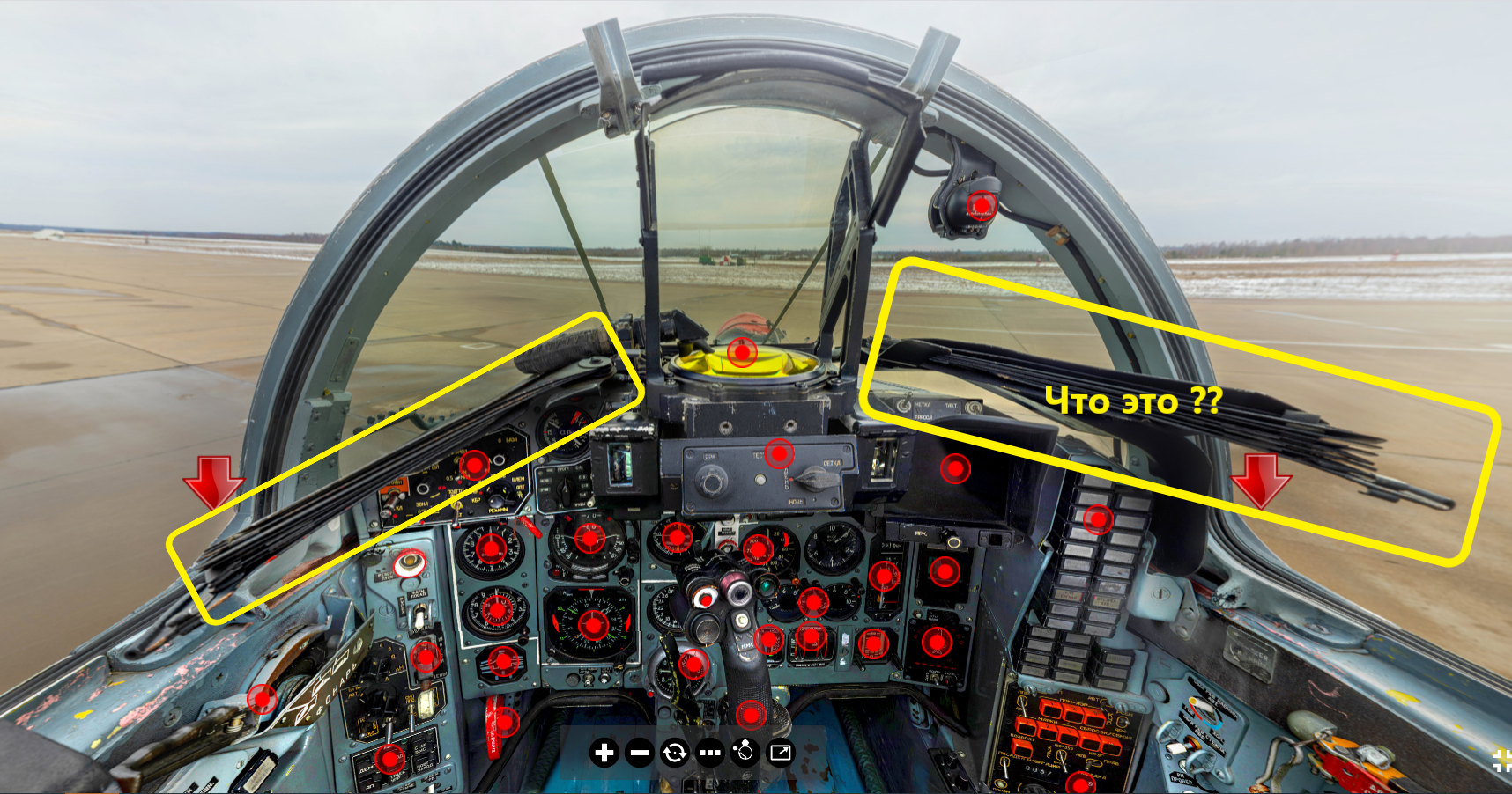 Кстати вопрос к Вам как специалисту. Не могу сейчас добраться до знакомых на завод им.Чкалова спросить, уехал далеко и надолго - в кабине да данной панораме и на фото вижу в впереди слева и справа от мммм... индикатора какие-то конструкции, похожие на сложенный веер. Что это такое? Есть мысли прямо серьезно переделать кабину, тем более она полностью из пластика.