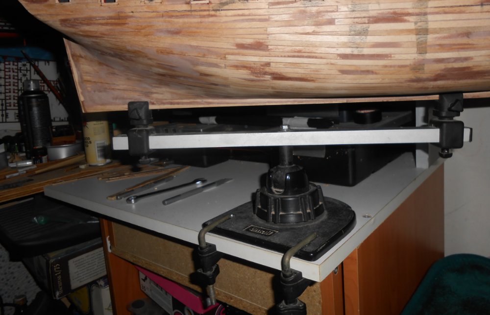 Стапель от Амати не держит нос и корму. Не позволяет правильно во всех плоскостях выставить шпангоуты. А вот на поздних этапах он удобен, потому, что позволяет повернуть модель под любым углом, в любой плоскости.