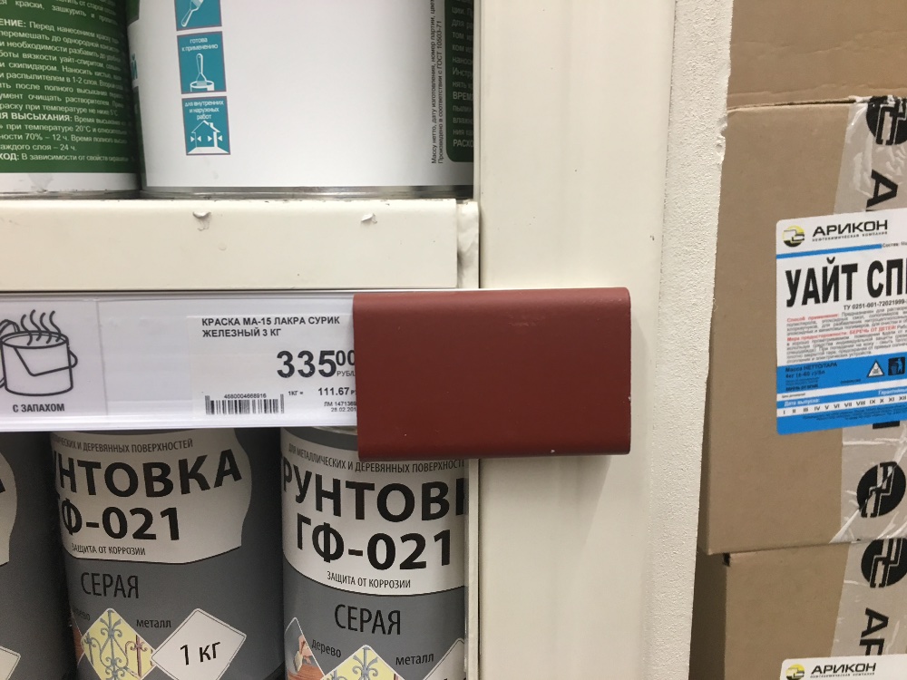 6. Грунт Rust Oleum, понятно белый. Очень жидкий, долго сохнет, дерево с одного раза не закрывает, из за того, что жидкий, почти сразу скатывается в капли. Производитель позиционирует высокую адгезию к дереву, но впитывается плохо. Цену не помню, но в области четырёхсот рублей. Моё мнение, помойка.