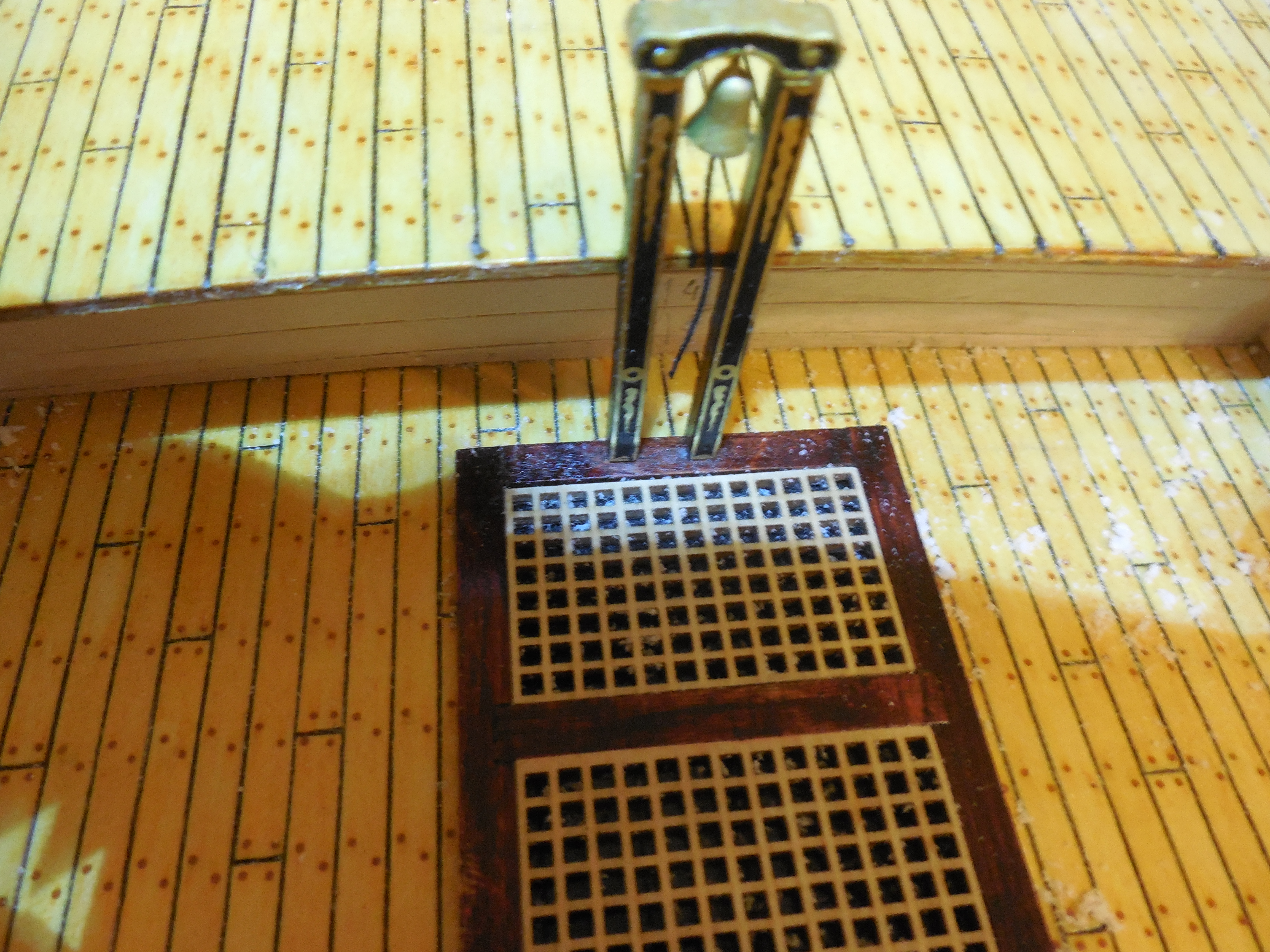. Из-за погиби палубы верхняя точка палубы оказалась приблизительно на 3 мм выше, чем было рассчитано. Но это полбеды. Я промахнулся с размещением рустерной решетки и колокольня встала на комингс люка и чуть-чуть не по центру